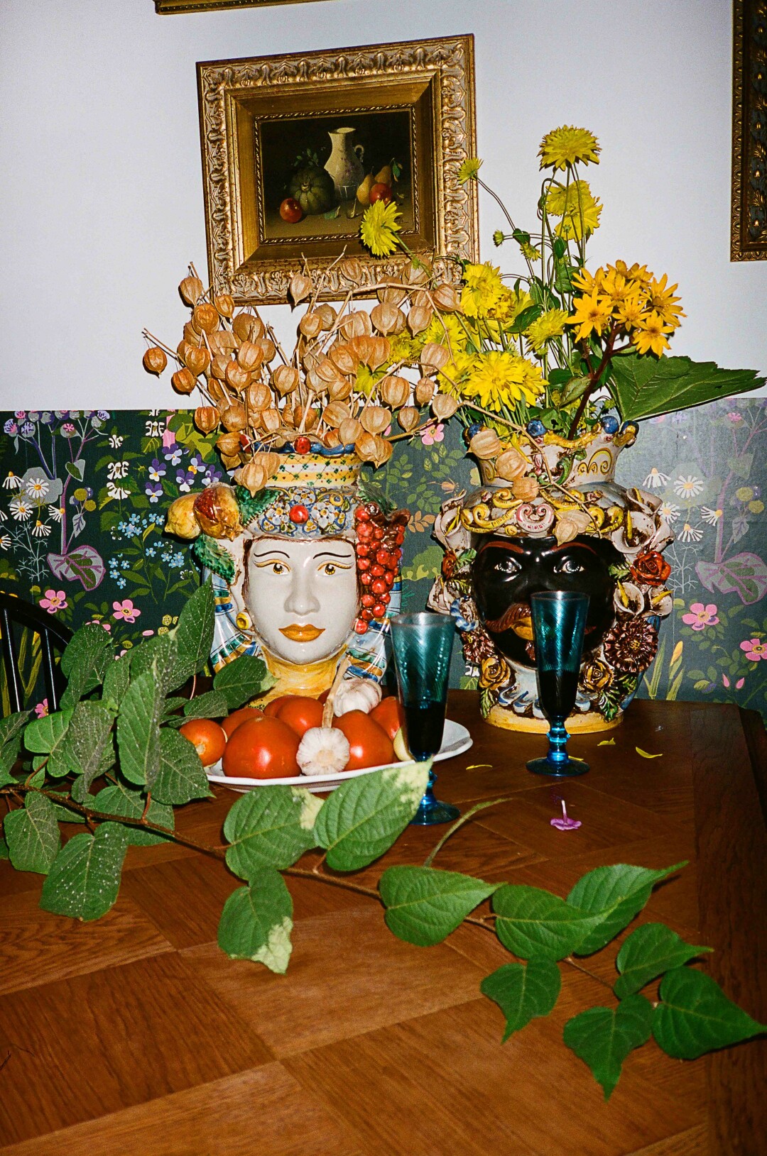 Картина и вазы приехали с барахолок Италии, на стене — английские бумажные обои