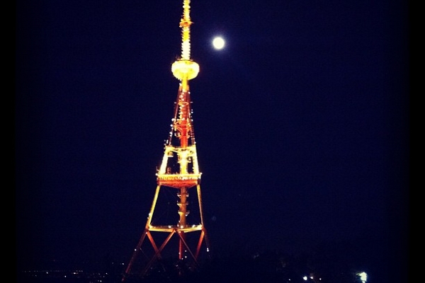 Тбилисская телевышка стоит над городом на горе Мтацминда. Рядом — новое 62-метровое колесо обозрения в местном парке аттракционов, откуда открывается головокружительный вид на город и окрестные горы. Оба сооружения ярко подсвечиваются ночью, поэтому в каком бы закоулке центрального Тбилиси вы не оказались, они будут видны отовсюду. Телевышка первая встречает и провожает самолеты, переливаясь теплыми огнями над городом.