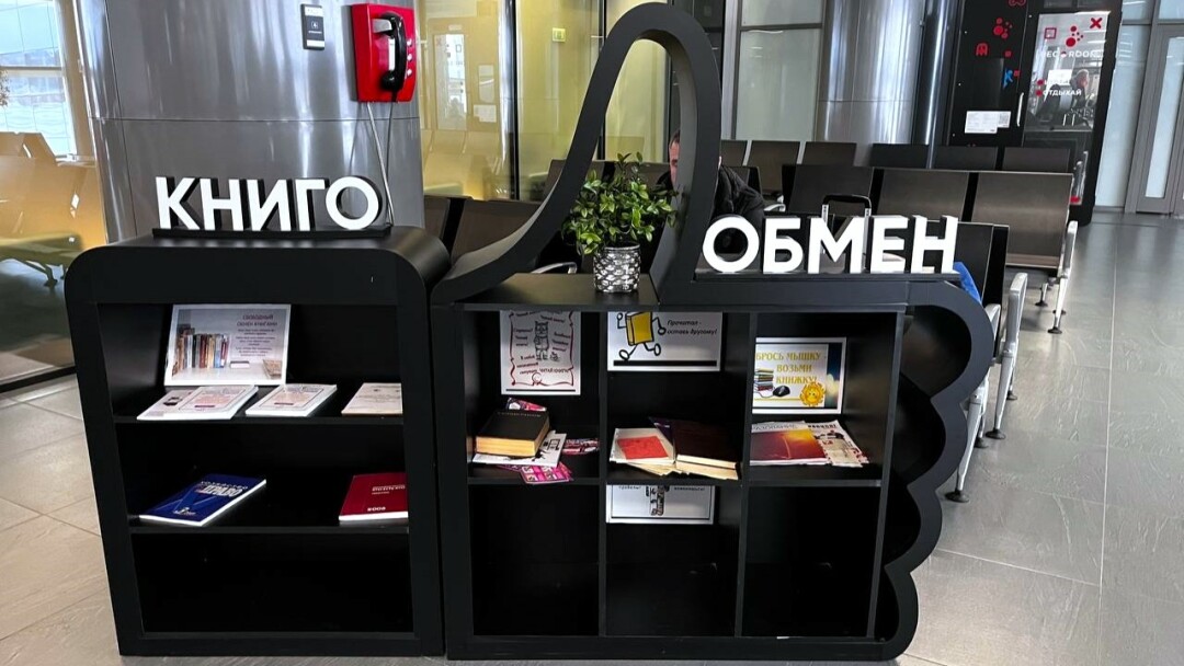 В международном аэропорту Перми запустили акцию про буккроссингу. В зале ожидания внутренних рейсов установили специальный стеллаж для обмена книгами.