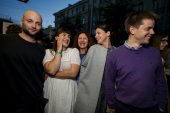 Чтобы поприсутствовать на открытии биеннале «Manifesta-10» в минувший уикенд в Петербург съехались представители современного искусства со всего мира. После просмотра некоторых экспонатов выставки за день до ее официального открытия, арт-богема отправилась в ресторан B152 Tearoom на коктейль по случаю третьего выпуска журнала Garage Magazine. Владелицы журнала Даши Жуковой, к сожалению, на вечеринке не было, зато на коктейль заглянули куратор «Manifesta-10» Каспер Кениг, галеристка Айдан Салахова, Алена Долецкая, журналист Федор Павлов-Андреевич и многие другие. На летней террасе, напоминающей парижские кафе, гости вечера, вооружившись необычным бумажным реквизитом, сделанным по мотивам работ таких известных художников как Дэмиен Херст, Рене Магритт и других, снимали веселые селфи в фотобудке. Танцы на столе под сет Тимофея Смирнова не заставили себя долго ждать.