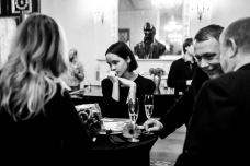 После емкого и графичного спектакля гости показа собрались в Царском фойе, где все от ресторатора Матильды Шнуровой и актера Никиты Ефремова до дизайнера и совладелицы бренда JM Studio Юлии Матвиенко и оперной дивы Мариинского театра Олеси Петровой поздравляли с успехом режиссера и арт-директора фестиваля "Опера всем" Виктора Высоцкого, дирижера Мариуса Стравинского и, конечно, Марию Адоньеву.