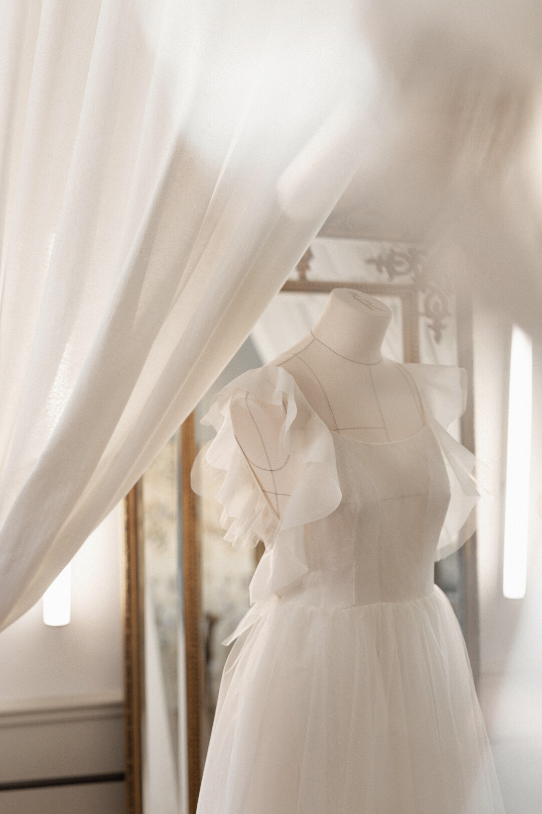 Для особо переживательных невест есть тренинг-примерка. Мы ходим, смотрим, трогаем и примеряем понравившиеся силуэты, чтобы невесте было легче нащупать свои предпочтения и четко понять, что решение шить — верное. Тренинг-примерка редко случается, большинство доверяет нам и не настаивает на этом мероприятии.