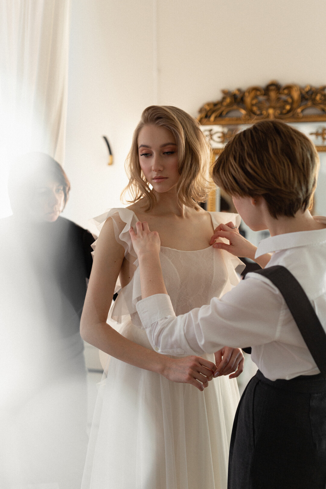 Моя задача как стилиста, через одежду проявить личность жениха и невесты, рассказать историю пары. Это можно сделать через аксессуары, цветы, детали, обувь, цветовую палитру, выбор того или иного стилевого направления. Хочется, чтобы пара смотрелась гармонично, чтобы они сами от себя кайфовали в день свадьбы. Когда дети будут пересматривать альбом со свадьбы родителей, они обязательно обратят внимание на их сияющие глаза.