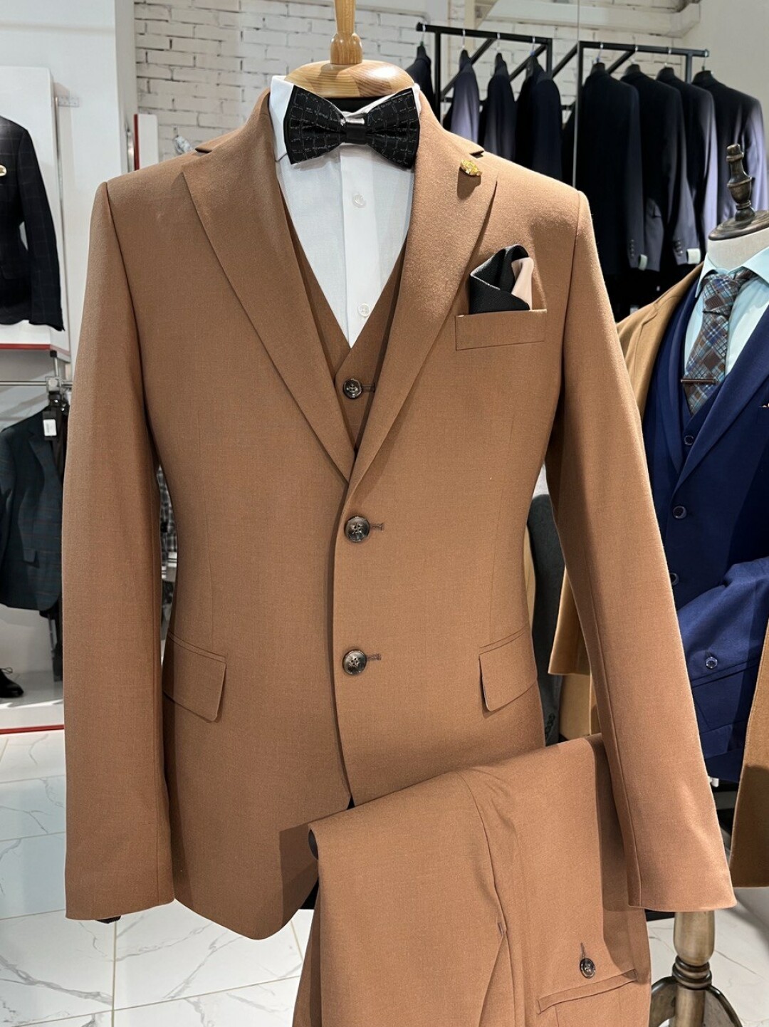 Подобрать мужской свадебный костюм — задача зачастую посложнее, чем выбор платья для невесты. Классический черный смокинг для жениха, хоть и является золотым стандартом — не эталон. Во многом образ жениха складывается из концепции свадьбы и цветовой палитры праздника. Как правило, женихи выбирают костюм в темно-синем цвете — он не будет слишком выбиваться из классического свадебного стиля и в то же время позволит выделиться. Особенно изысканно будет смотреться темно-синий смокинг из благородной бархатной ткани. Стильное решение — костюм в белом, бежевом, персиковом оттенке или в цвете топленого молока. Жених будет выглядеть романтично, но при этом статусно и свежо.
