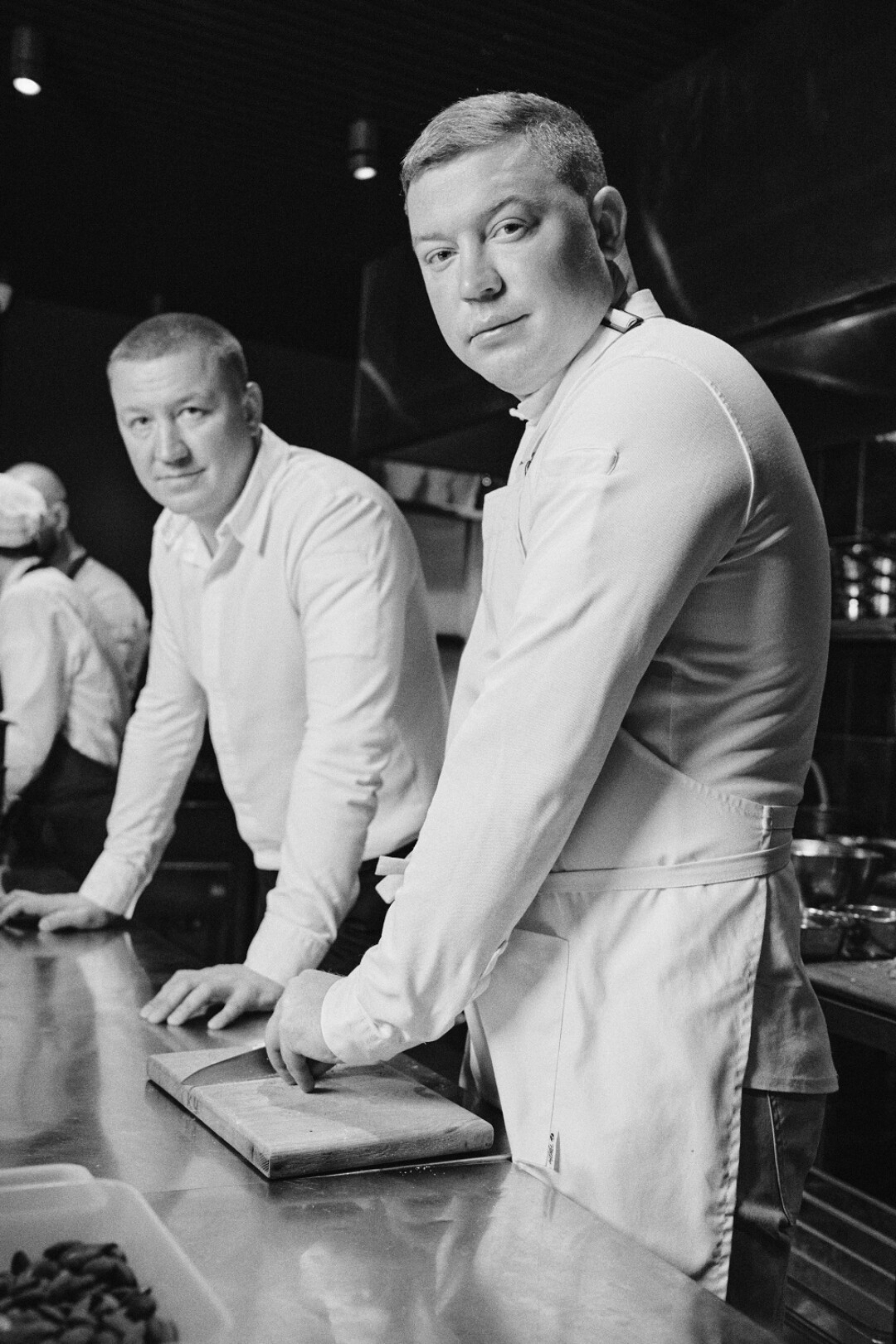 Артем: В «Эрарте» у меня ты тоже здорово прокачался, не забывай. (Смеется.) Проработав пять лет в ресторане в Выборге, я стал чувствовать себя жижей, которая не развивается, а стремиться к чему-то большему для меня очень важно. Решил уехать в Петербург, где я примерно никто, и полтора года искал работу шефом. В тот момент новых ресторанов было немного — это сейчас любого профи оторвут с руками и ногами. Линейным поваром и су-шефом был идти не готов, так что ради заработка выходил в кафехи и с бабульками чистил картошку за 800 рублей за смену. И вот когда свою мотивацию выстрадал по полной, появилась «Эрарта»: еще в Выборге я много участвовал в конкурсах и конференциях — «Балтийская кулинарная звезда», Академия гостеприимства, — и все эти регалии помогли мне устроиться. В музее современного искусства я сначала доказал, что могу обеспечивать стабильную работу ресторана на ежедневной основе, потом начал креативить с сетами, посвященными выставкам и художникам. Меня заметили гастрокритики, фуди и, главное, гости. Стали приходить предложения открыть ресторан, которых я, собственно, в то время уже только и ждал. На одно из них я ответил согласием — и так появился Bobo, ресторан братьев Гребенщиковых. В нем мы с Алексеем, как и мечталось когда-то, вместе с первого дня.