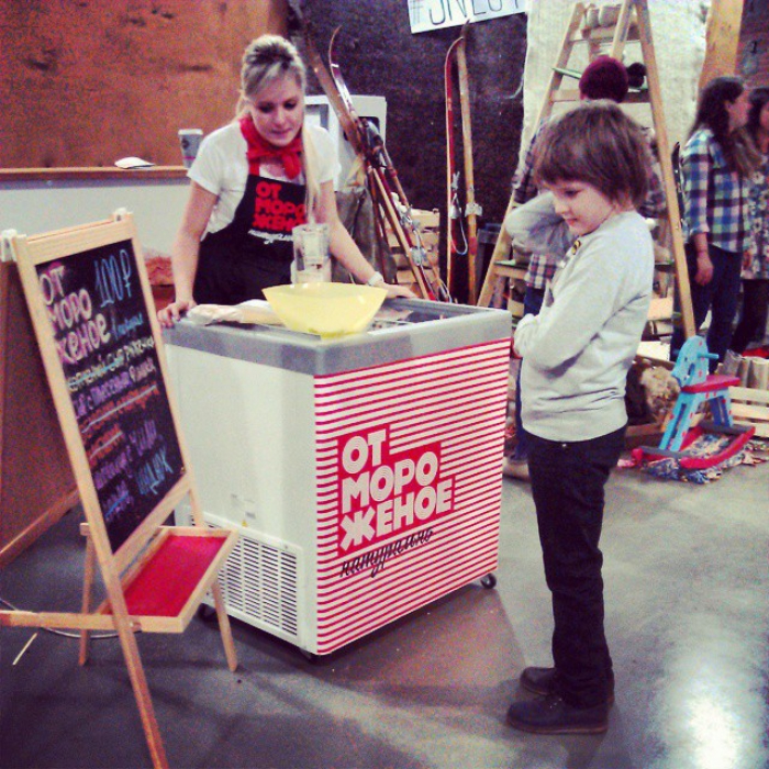 Дегустация нашего «отмороженого» — это аттракцион. С каждым, кто впервые пробует новаторский сорт мороженого, происходит трансформация — в скептическом ожидании они пробуют, а когда понимают вкус, на их лице появляется сияющая радость открытия. Они переживают когнитивный диссонанс — во рту привычный лед мороженого, но в уме всплывает лосось, петрушка, помидоры. Особой популярностью у нас, например, пользуется сорт «Сырное копченое». Обычно для сырного мороженого используются изысканные виды сыра — горгонзола, дор блю. В ответ на санкции мы сделали отечественную модификацию — вообразите, что кусаете шарик мороженого, а во рту появляется яркий вкус копченого сыра. Еще у нас есть алкогольная линейка: «Самбука с медом», которое получило золотую медаль на конкурсе Инновационный продукт Продэкспо-2015, «Бейлиз шоколад», «Виски с кофе», «Блю кюрасао». Мы используем только настоящие алкогольные напитки, никаких смесей или ароматизаторов. В порции есть до 10% алкоголя, но эффект, я бы сказала, слабовыраженный.