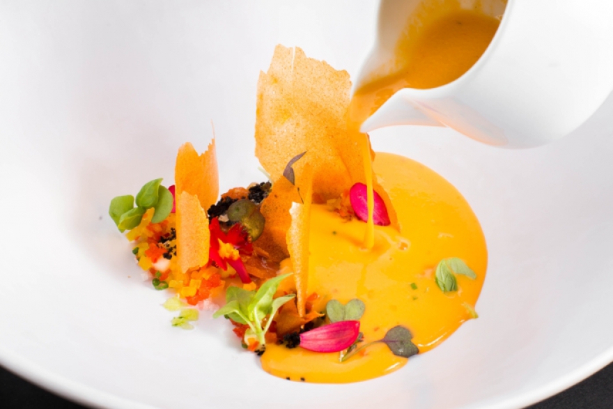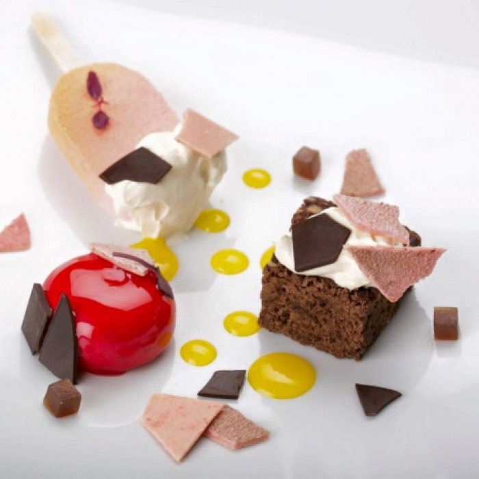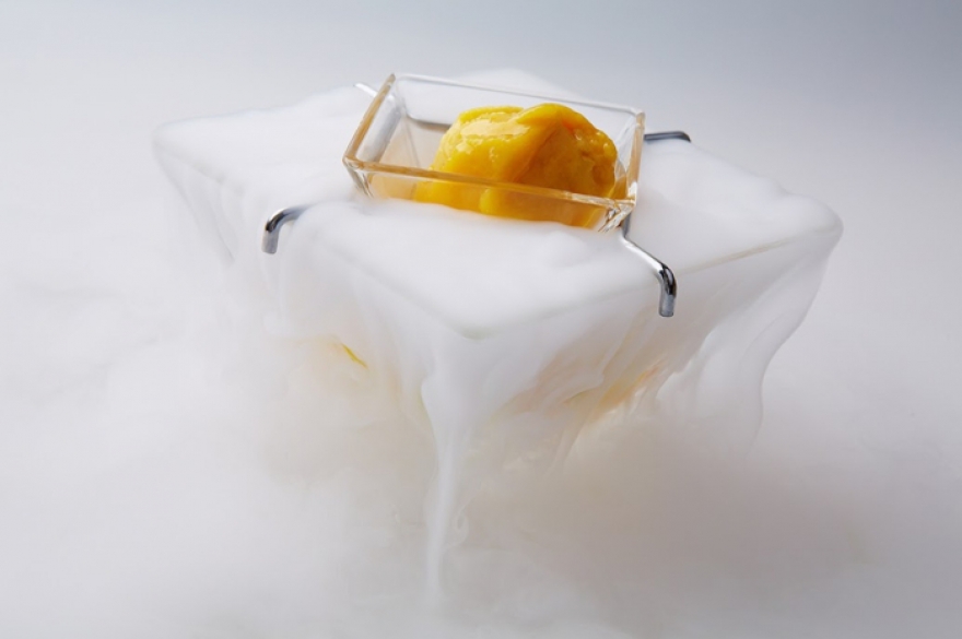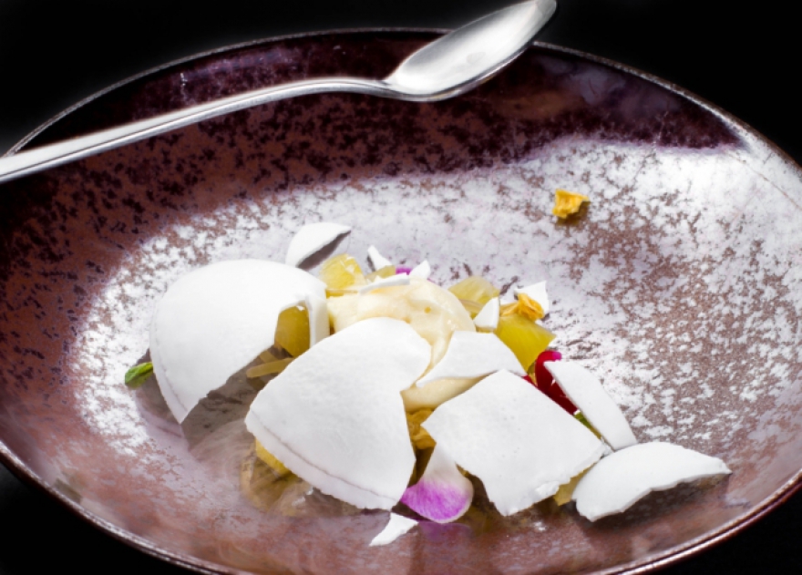 Сюрреализм — это про иллюзии, парадоксы и о том, что все не то, чем кажется. Лучше всего с этим справляется Игорь Гришечкин в «Кококо»: его еда притворяется то палитрой с красками, то разбитым цветочным горшком.