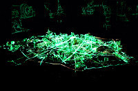 Уральский художник Владимир Селезнев в Государевом бастионе Петропавловской крепости показывает инсталляцию «Метрополис»: груда мусора при смене ракурса освещения обернется романтической россыпью городских огней, будто бы увиденных из самолета. |
