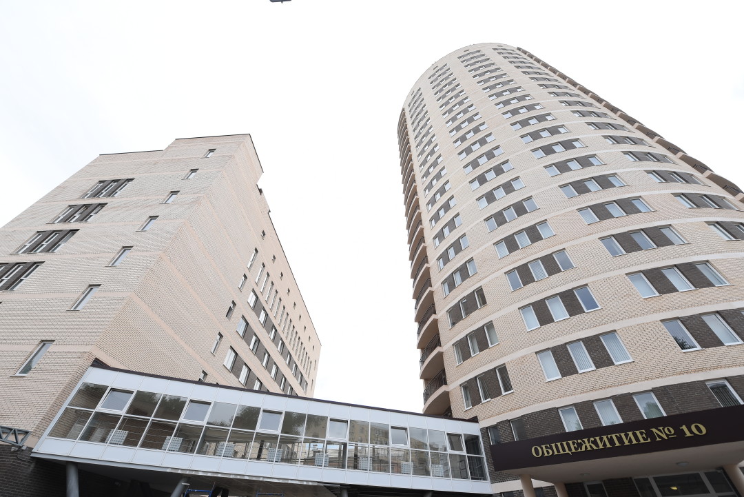 В этом непростом году мы действительно завершили строительство 23-этажного общежития площадью более 22 тысяч кв. м. Здесь в современных комфортабельных помещениях может разместиться почти тысяча человек – сегодня мы уже заселяем туда студентов.