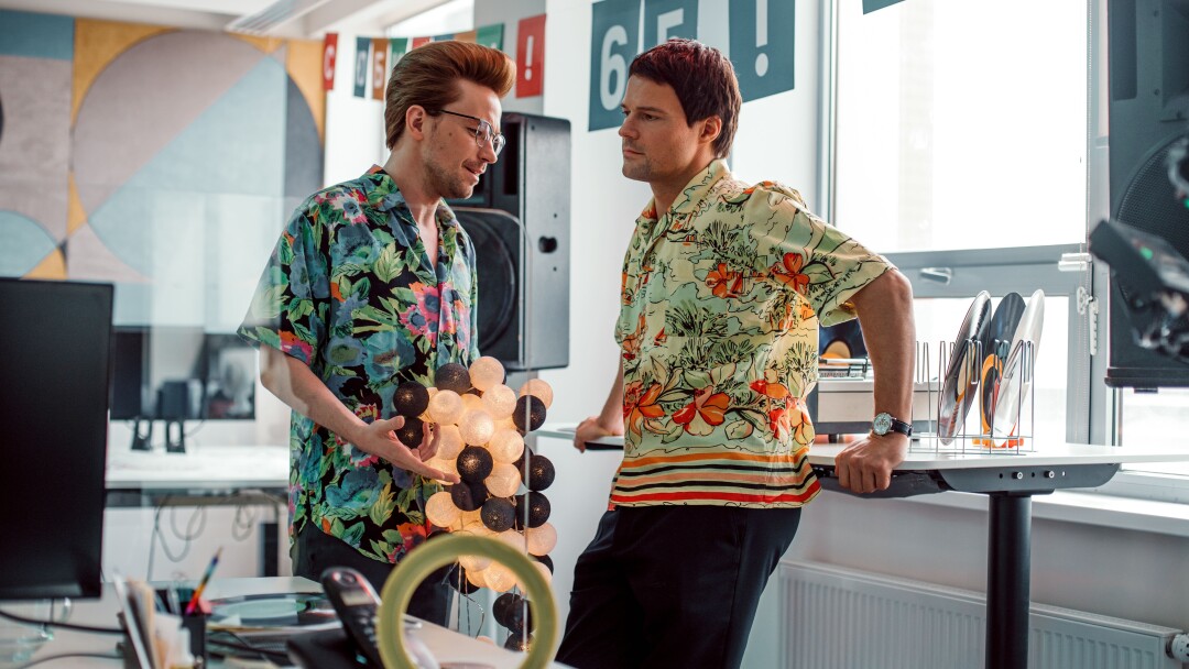 Мелодрама Валерия Тодоровского («Оттепель»), в которой солируют одни из самых востребованных актеров своих поколений — Данила Козловский и Александр Петров. Коллеги и друзья Костя и Саня в нелепых гавайских рубашках — будто они сбежали из другого фильма Тодоровского «Стиляги» — отправляются в командировку в Петербург. Там они встречают двух девушек (Ирина Старшенбаум и Елизавета Базыкина), что разделяет их жизнь на «до» и «после», то есть «надвое».