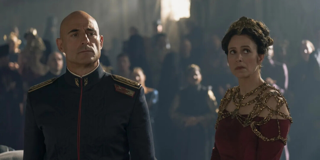 Описывать сюжетные линии вселенной «Дюны» сама по себе непростая задача, однако в сериале хитросплетения дошли до критического уровня уже в экспозиции. Судите сами: действие происходит за 10 тысяч лет до событий из фильмов Вильнева. Человечество пережило войну с разумными машинами и строжайше запретило использование роботов, однако атмосфера тревожная — все сильно опасаются повторения битвы с искусственным интеллектом. Параллельно несколько кланов плетут интриги в борьбе за власть и драгоценный меланж (он же спайс), который добывают на стратегически важной песчаной планете Арракис. Важную роль в истории играет Сестринство — орден, состоящий из ясновидиц во главе с реальным сестрами Харконнен: Валей (Эмили Уотсон из «Рассекая волны» и «Чернобыля)» и Тулой (Оливия Уильямс, блеснувшая в «Призраке» Романа Полански). Это на его основе появится школа Бене Гессерит. Сильные женщины планируют установить новый мировой порядок, не менее сильные мужчины в исполнении Марка Стронга, Брендана Коуэлла и Трэвиса Фиммела с недоброй искоркой безумия в глазах тоже имеют свои соображения на этот счет. Медленно, но верно надвигается буря.
