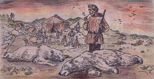 7 декабря в галерее Anna Nova октроется выставка Юрия Александрова Mania grandiosa. Уроженец послевоенного Ленинграда создавал иллюстрации для детских книжек народов Крайнего Севера почти сорок лет назад. Теперь же репродукции своих картин на этнические сюжеты художник уменьшил до размера открыток и поместил их в деревянный ящик, напоминающий песочницу: персонажи - чукотские иудеи или Фаренгейт с ружьем - превратились в героев театрального действа.