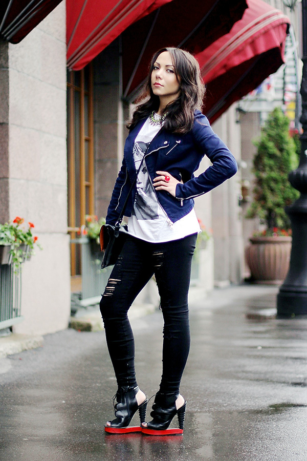 На Карине: футболка Must Have by Retro Shop, джинсы Joe’s Jeans, куртка Alexander McQueen, туфли Alain Quilici for David Koma, сумка Fomitchoff, кольцо Missile