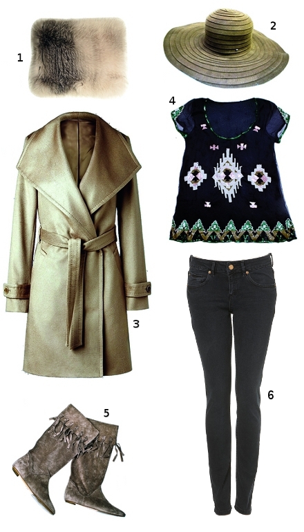 Богемный шик, идеально подходящий для климата Лос-Анджелеса, вполне может выжить в петербургскую зиму. Достаточно обнаженные участки тела замаскировать джинсой, мехом или теплым кашемиром, а от мокрого снега спасет широкополая твидовая шляпа.