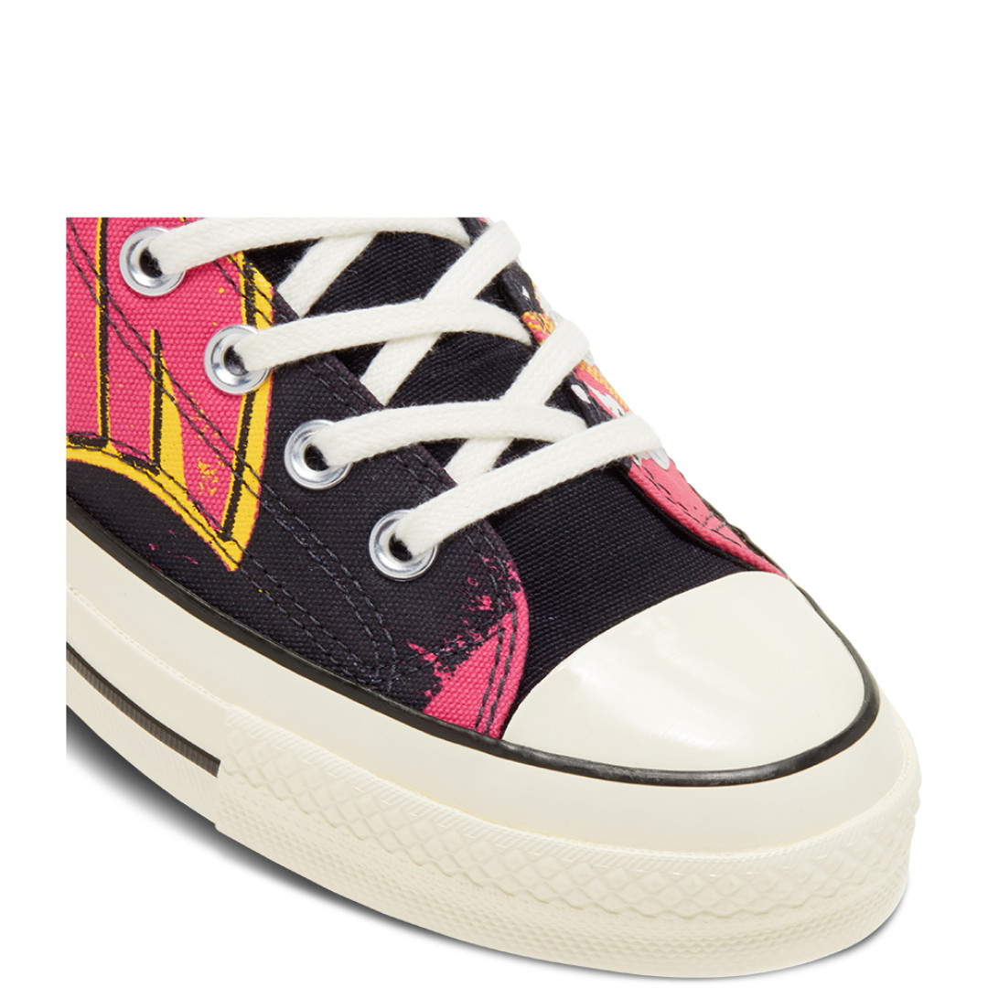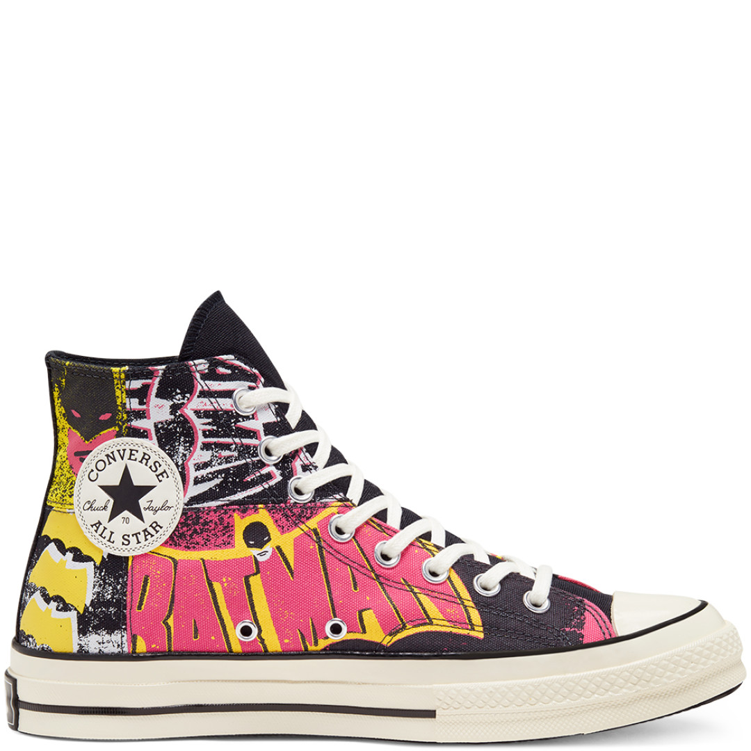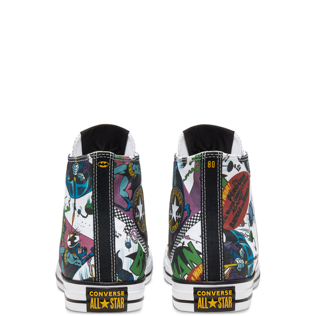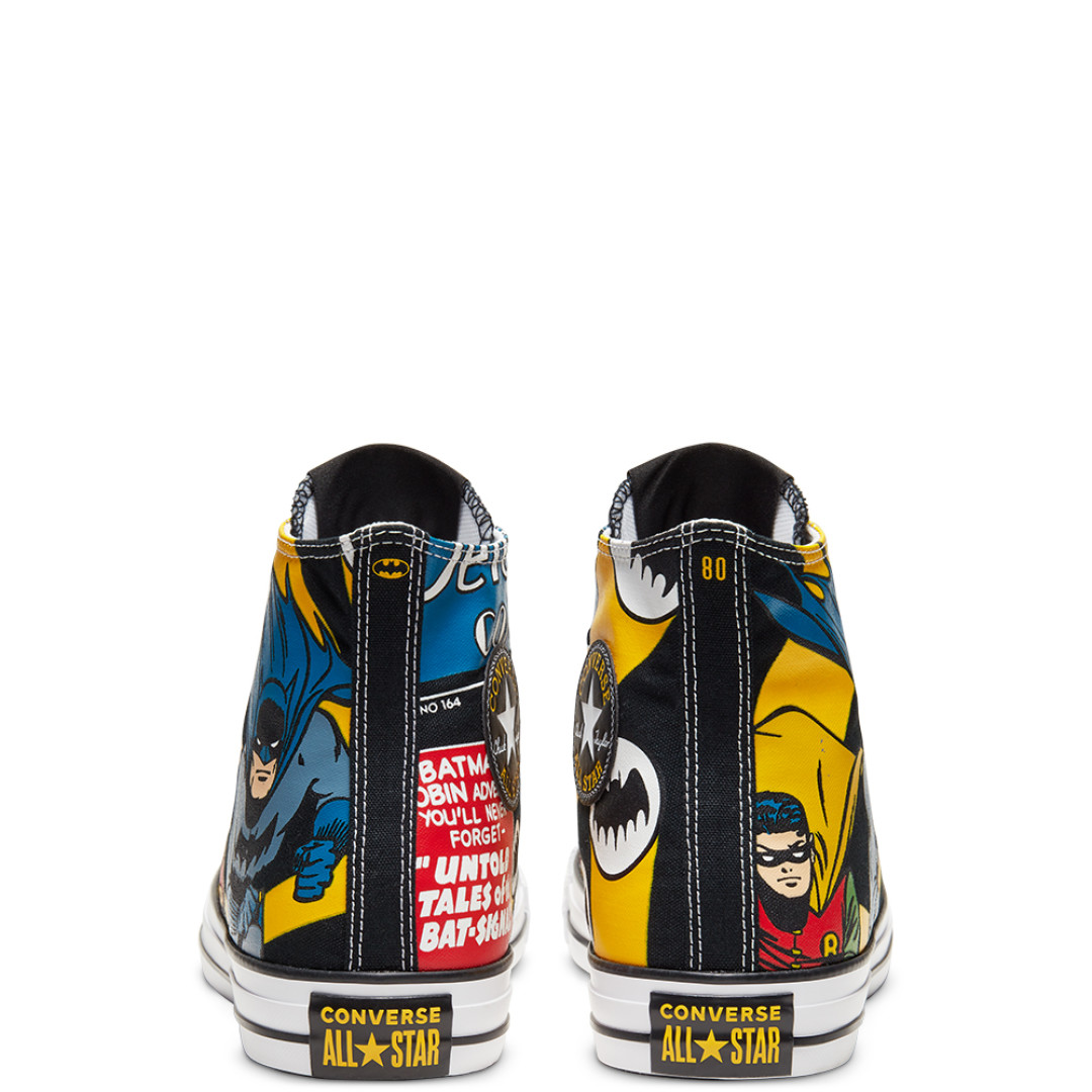 Капсульная линейка создана на базе классических Converse – Chuck Taylor All Star and the Chuck 70. На языке, задней части и стельке разместился бэт-сигнал: чтобы вы всегда могли узнать своих среди чужих, а сами модели выглядят, как микс творчества Лихтенштейна и Уорхола – одним словом, очень красиво!
