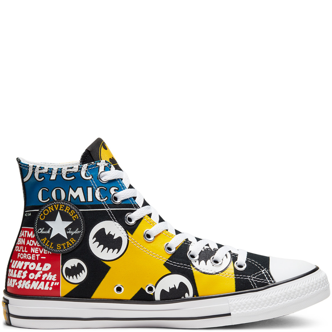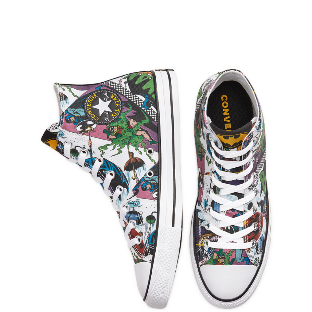 Американский бренд Converse выпустил лимитированную коллекцию кед в честь юбилея Брюса Уэйна – обувь украсили комиксы о подвигах супергероя Готэм Сити.