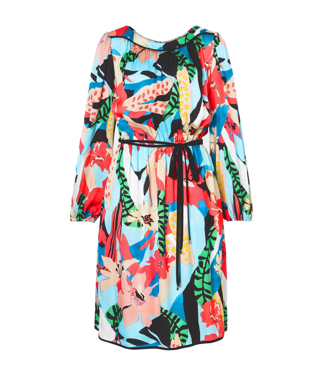 Белые платья с поясом можно надевать дома уже сейчас, например, на вечеринку по Zoom в честь Дня рождения. Широкие брюки с абстрактным рисунком и свитер с аппликацией – отличный вариант для ежедневной работы вне офиса. Отдельного внимания заслуживает юбочный костюм с animal-принтом (он соберет не одну сотню лайков в Instagram), и клатч на ремне, который станет классным аксессуаром любого аутлука этой весной.