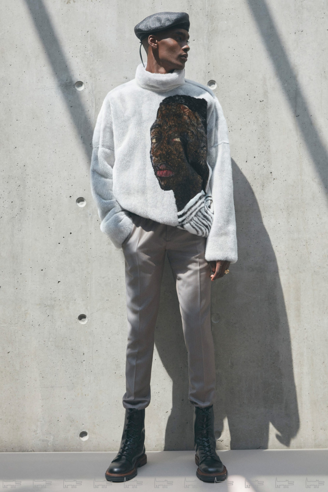 В коллекции Summer 2021 рубашки в ретро стиле и водолазки в ​​рубчик с портретами авторства Амоако Боафо, шорты с поясом, ботинки на шнуровке, сандалии с носками и, конечно, вещи с принтом папоротника.