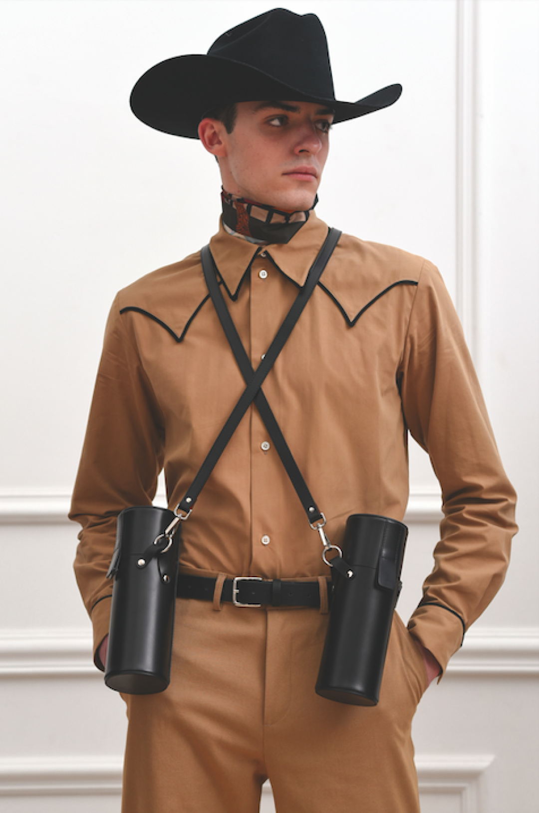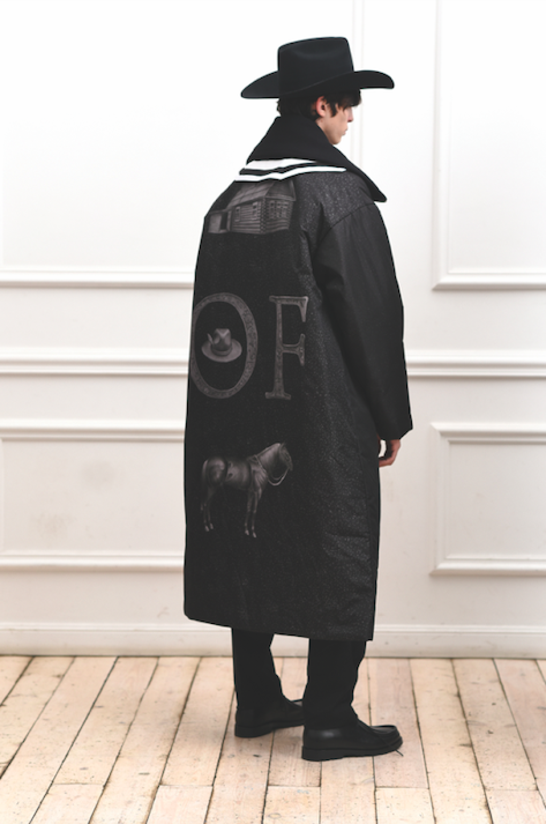 Герой коллекции петербургского бренда House Of Leo переживает перипетии классического романа-воспитания и эволюционирует от ковбоя до масона. Принты, выполненные как будто карандашным рисунком, сочинил художник и тату-мастер Тимур Война Кошка.