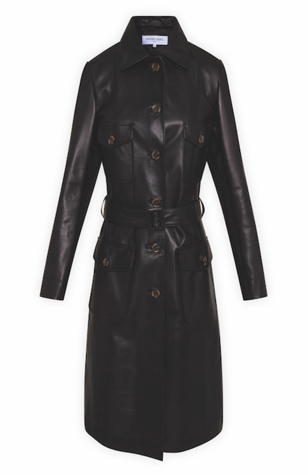 Пожалуй, самая кинематографичная марка Gerard Darel не сдает позиций: наш новый (и вовсе не смутный) объект желания — это черный кожаный плащ, который, разумеется, стоит по-киношному носить на голое тело.