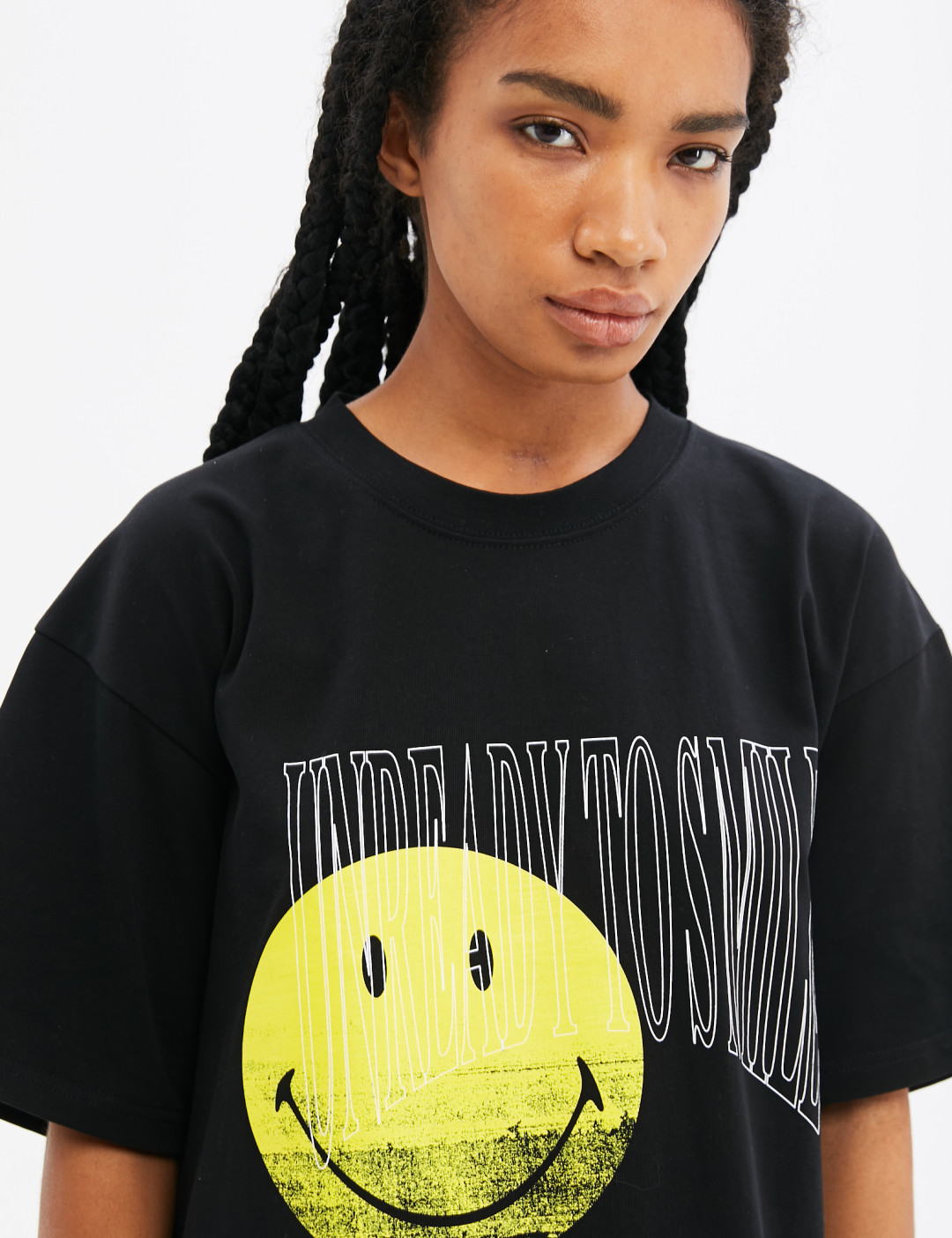 Совместная коллекция ZNY и Smiley переосмысляет общественные установки о необходимости улыбаться 24 часа в сутки и отстаивает право человека на любое эмоциональное состояние, отсюда и название коллаборации — UNREADY TO SMILE.  результатом совместной работы российского и британского брендов стали футболки, худи и толстовки из плотного хлопка Heavy Cotton с жизнерадостным смайлом и слоганом коллаборации.