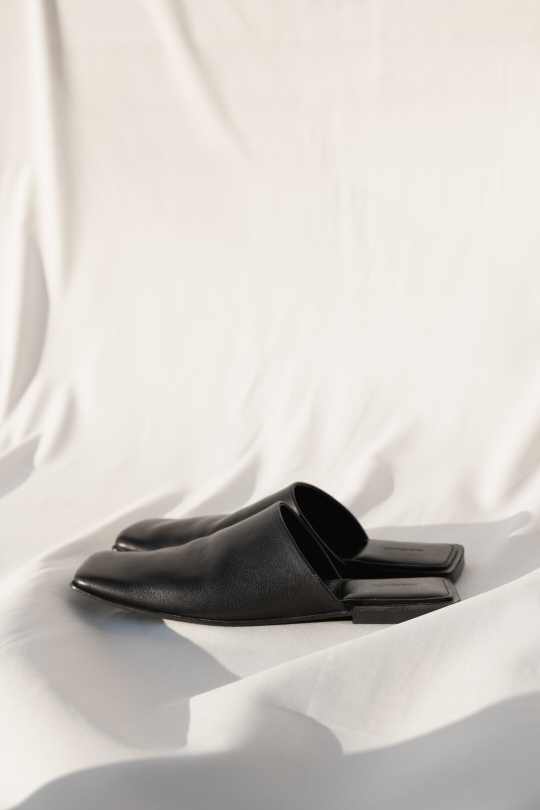 Все вещи традиционного для марки лаконичного и функционального дизайна. Это объемные тренчи классического силуэта с архитектурными деталями: воротником-стойкой с заостренными лацканами, отлетной кокеткой и широким съемным поясом. Кроме того, дроп дополнили мюли с квадратным носком из кожи наппа. Над обувью FLÜG работали вместе с петербургской студией обуви ручной работы MISLISTUDIO.
