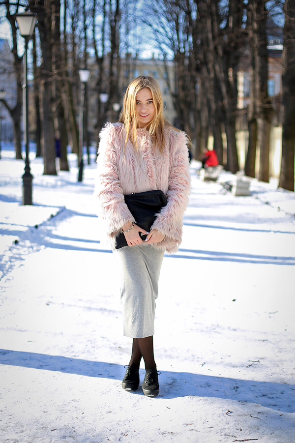 На Рите: шубу сшила бабушка, майка Dolce & Gabbana, юбка Topshop, кеды Vagabond, клатч Coccinenelle, браслет Alexander McQueen