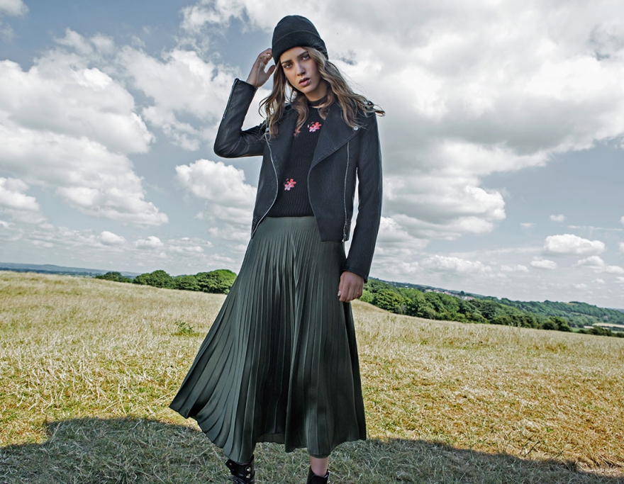 Лукбук одного из младших брендов Inditex Group одновременно напоминает об осенних коллекциях Gucci, Marc Jacobs и Chloe: от первых — плиссированные юбки и бабочки на джинсовых вещах, от вторых — неоготичные а-ля кружевные платья, от третьих — бохо-блузки. И что самое приятное, всё это в 20-50 раз дешевле подиумных хитов.