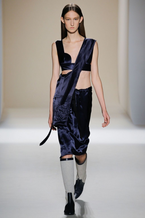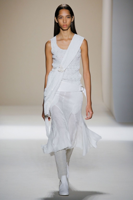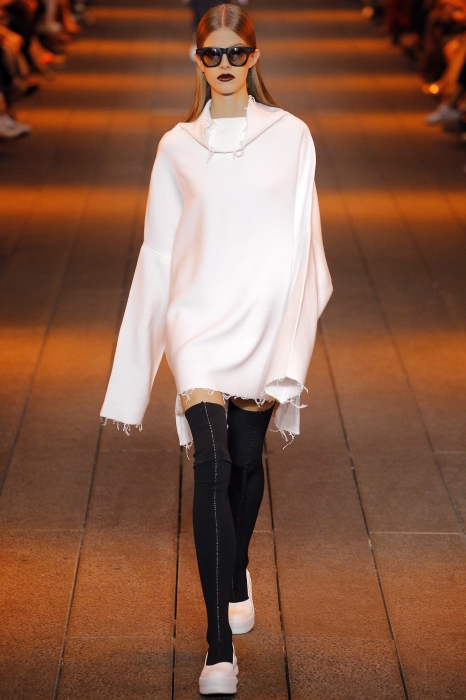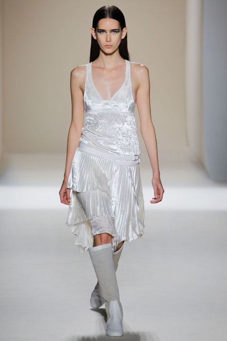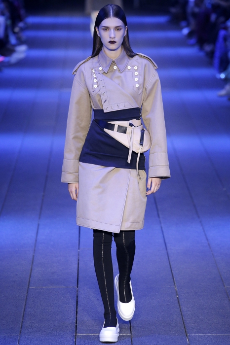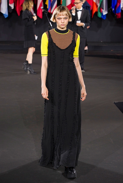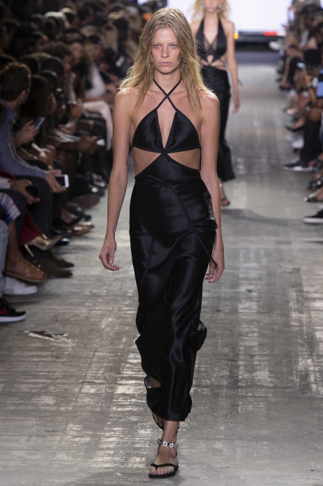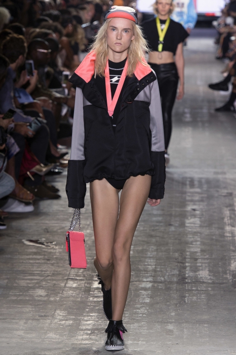 Новые дизайнеры DKNY Дао-И Чоу и Максвелл Осборн представили третью коллекцию. Напомним, год назад Донна Каран объявила о своем уходе из бренда, а генеральный директор Donna Karan International Кэролайн Браун начала программу ребрендинга, пригласив дуэт основателей марки Public School. Весенне-летнюю коллекция Чао и Осборн посвятили уличной культуре: здесь и худи с длинными рукавами, рабочие комбинезоны на кулисках, прозрачные спортивные ветровки, легинсы и заправленные в носки тренировочные штаны. А модельный состав шоу стал поводом для похвалы от критиков. Девушки на подиуме не отличались принятой ультрахудобой и больше напоминали ангелов Victoria’s Secret: Имаан Хаммам, Стелла Максвелл, Тейлор Хилл и Белла Хадид, которая открывала и закрывала показ.