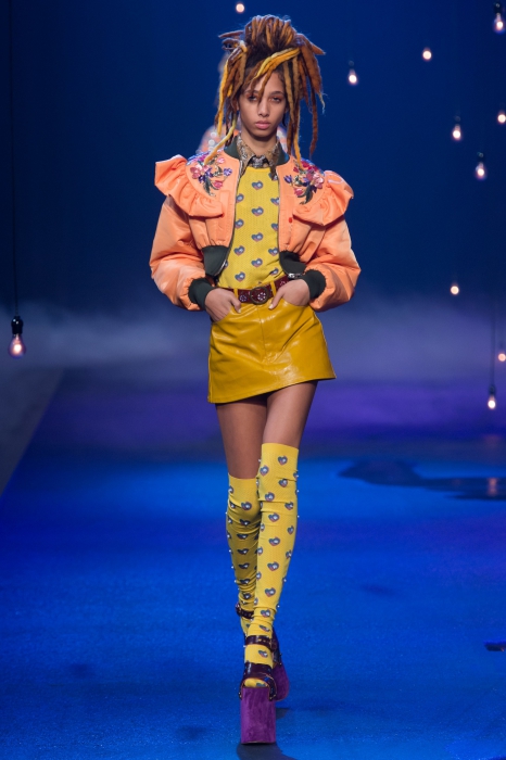 Завершил неделю моды показ Марка Джейкобса. Судя по прическам моделей главной музой американского дизайнера стала его друг Лана Вачовски: специально для показа бренд заказал 12500 вручную сплетенных искусственных дредов. С прошлой коллекции сохранились ботфорты на 20-сантиметровой платформе, но теперь они не черные, а серебряные или розовые, как из 1980-х. Это десятилетие и стало центром мудборда Джейкобса: много вещей с перламутровым отливом, увеличенная линия плеча, а некоторые аутфиты повторяют концертные костюмы Бой Джорджа.