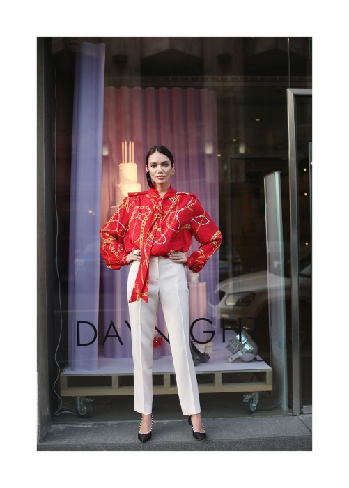 Новую коллекцию Balenciaga с сумками-пылесосами, деконструированными джинсовками и платьями из банкнот придется ждать до следующего сезона, зато уже сейчас в DayNight можно купить осенне-зимние вещи бренда. Это оверсайз-пальто, шопперы гигантских размеров, кружевные ботфорты, парки и пуховики с ассиметричными креплениями. В основу мудборда актуальной коллекции Демна Гвасалия положил образы, созданные когда-то самим Кристобалем Баленсиагой: «Я пересмотрел лукбуки Кристобаля почти за 30 лет его работы, и на многих моделях пальто запахивались именно так».