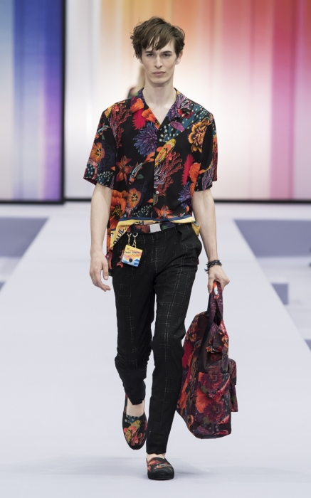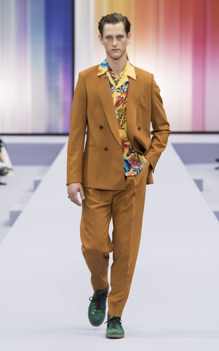 Новый весенний сезон Пол Смит сочинил, отправившись в виртуальное путешествие на Гавайи. Лейтмотивом коллекции стала рубашка с дико оптимистичным тропическим принтом, а стилевым приемом — наш любимый принцип капусты: чем больше слоев, тем лучше. Главное — придать образу максимальную небрежность, как будто вы идете с пляжа на препатийный коктейль. Носить — хоть на деловые встречи, хоть на вечеринки: в очередной раз в Paul Smith показывают мужчинам, как именно нужно сочетать цвет. Учитесь! (Paul Smith)