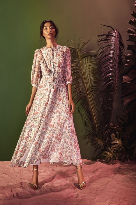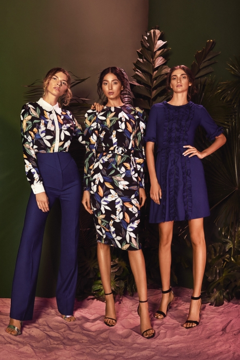 Весенне-летний лукбук Тетрадзе как призыв к максимальной женственности и романтике: облегающие силуэты, рюши, кружево, мелкий цветок, сетка, белые воротнички, гипюр, а еще тропические принты, глубокий синий, тренчи и позолота. В общем, все то, за что мы так любим Isabel Garcia.