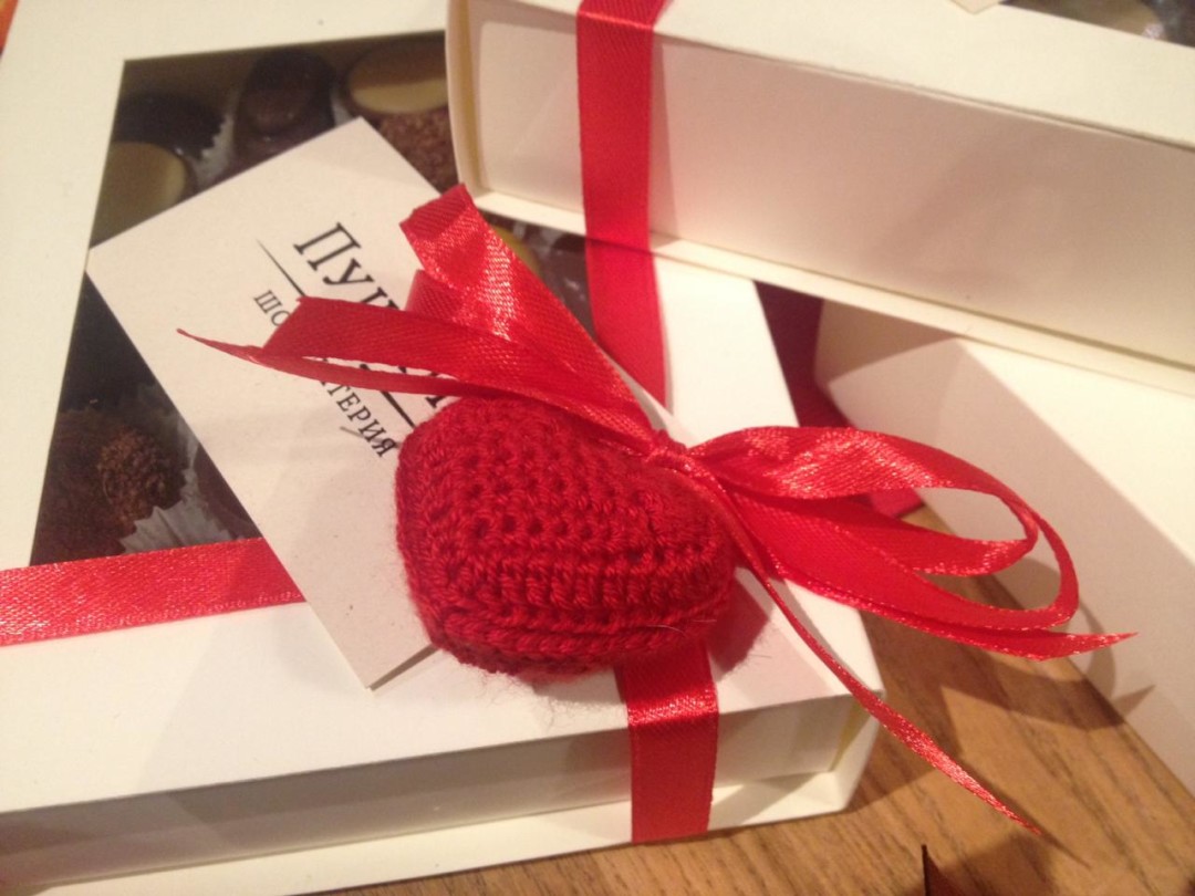 Набор конфет с сердечком  (16 штук)  1200 рублей. Шоколатерия «Пушкин», Университетский переулок, дом 52.