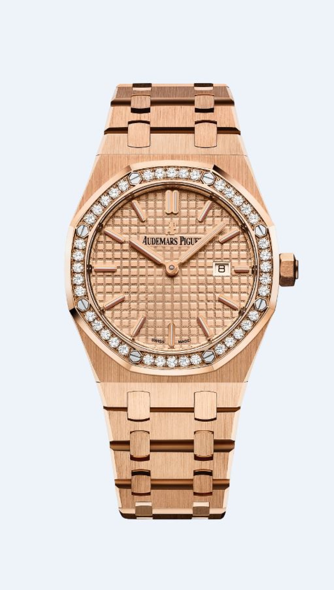 Последние версии часов с узором Grande Tapisserie cозданы не для робкого десятка. Безель декорирован четырьмя десятками бриллиантов классической огранки, а корпус и браслет выполнены из розового золота 750-й пробы. Слияние оттенков – новое прочтение классики.