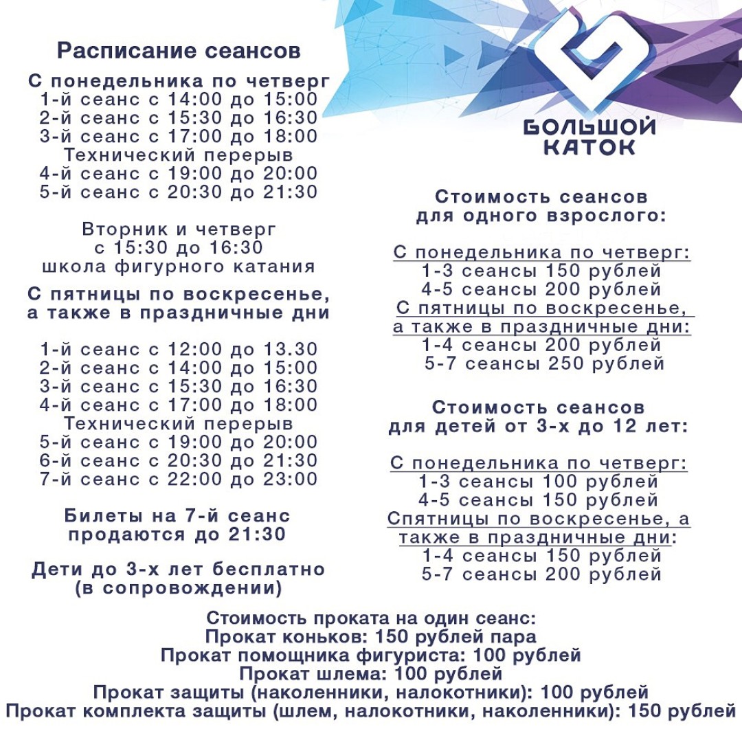 Скользить под романтические композиции за руку с любимым человеком можно под открытыми небом в киноцентре «Большой». 14 февраля вечер будет перенасыщен событиями и сюрпризами. С 19:00 до 21:30 создавать любовное настроение будет Love Radio. В программе: горячие напитки, тематические украшения и зажигательная музыка. Стоимость проката коньков – 150 рублей, один сеанс катания – 200 рублей. Расписание сеансов в фотогалерее.