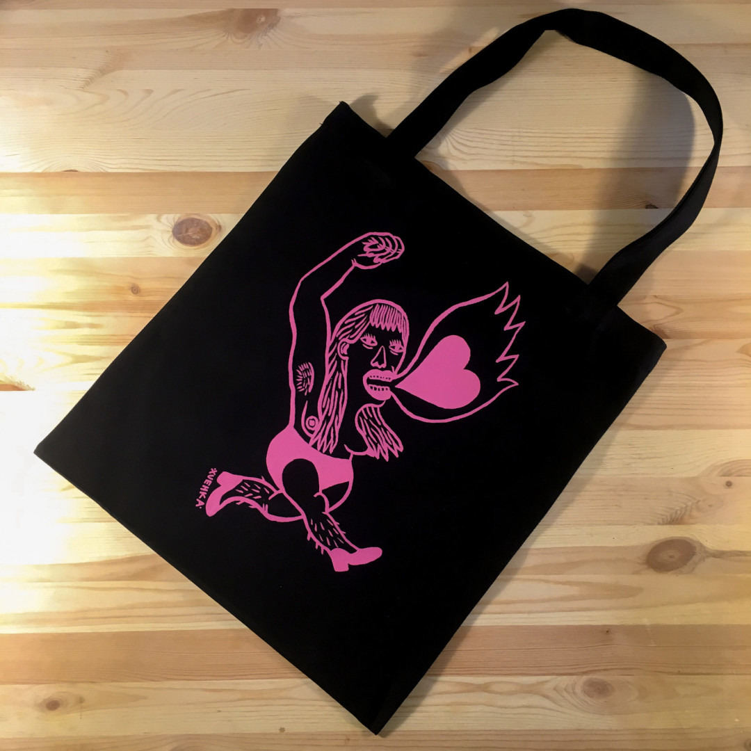 Театральные продюсерки Ксения Аникеева и Полина Зарипова и кинорежиссер Юрий Кропачев открыли первый в России онлайн-фемшоп «Самка». В нем можно купить книги по теории феминизма, шоперы с сюрреалистичными иллюстрациями, стикерпаки российских художников Nina Stadnik и Rodion Kitaev, а также термопатчи с лозунгами «Тронь меня и умри», «Дерись как женщина» и «Мастурбация никогда не разобьет тебе сердце», напоминающие кутюрный показ Viktor & Rolf.