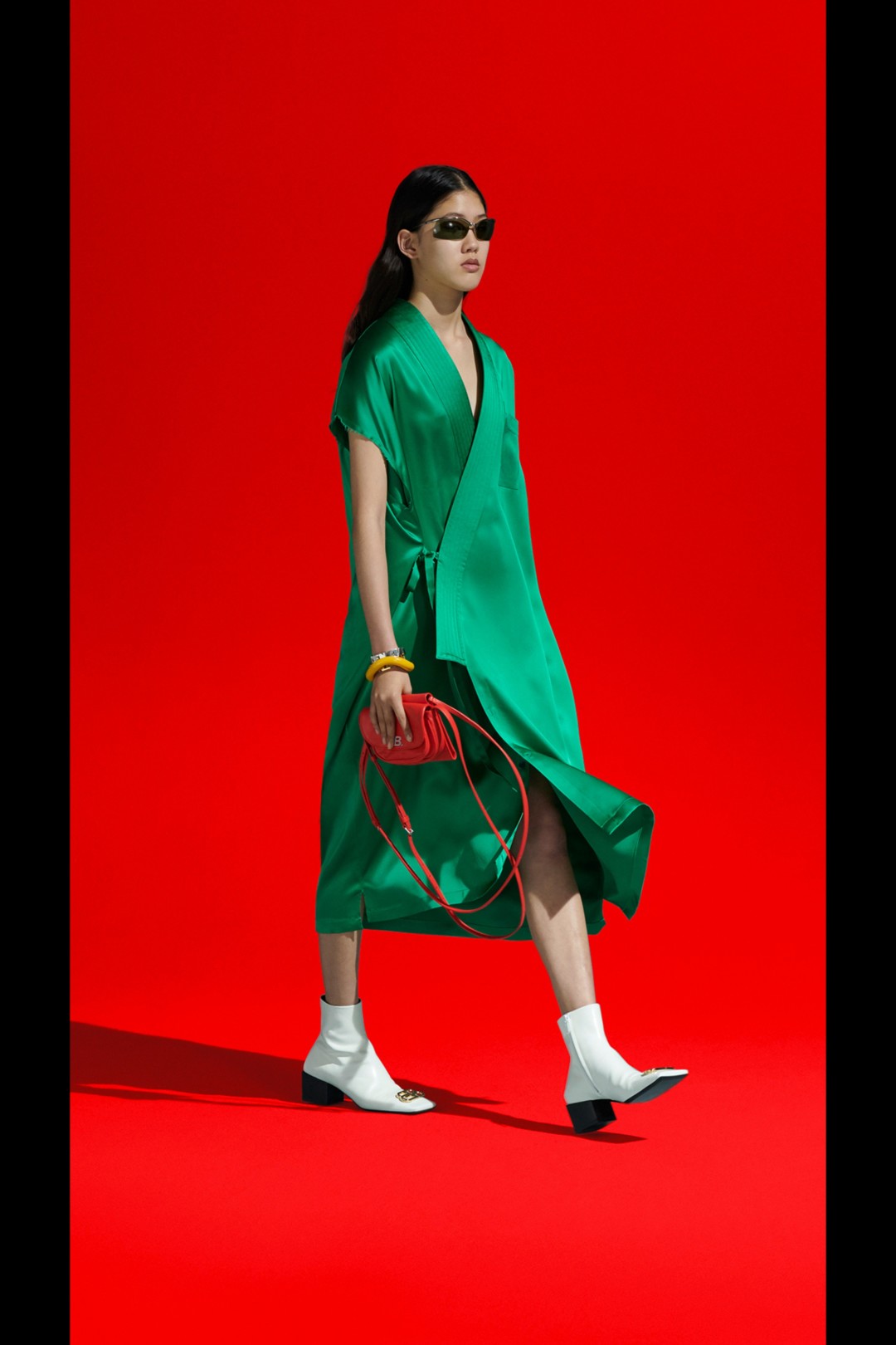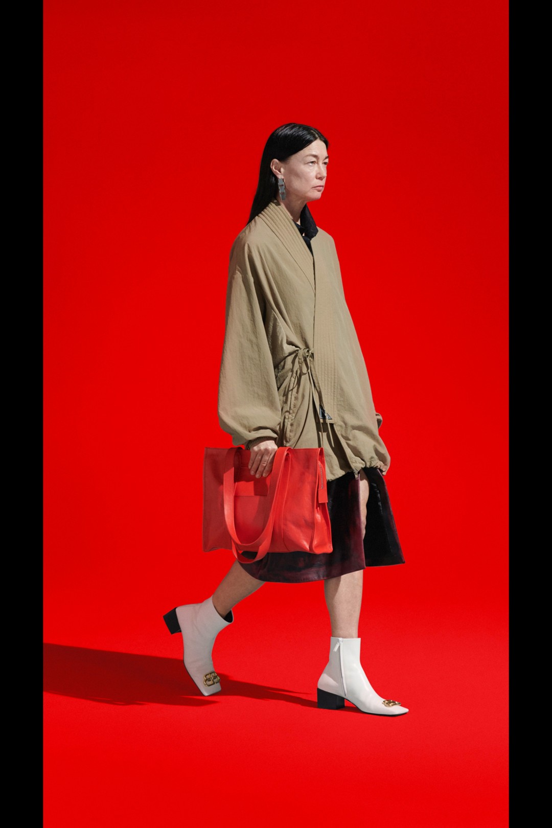 Атмосферу жизни большого города передают девушки и парни, которые слушают музыку, разговаривают по телефону, оглядываются на воображаемые небоскребы и делают селфи на ходу. На них — вещи, которые мы уже видели в рекламной кампании от Жан-Пьера Атталя: яркие пальто на манер кимоно, асимметричные платья в крупный горошек, оверсайзовые куртки с воротником-маской и вареный деним, который нужно носить в тотал-луке.