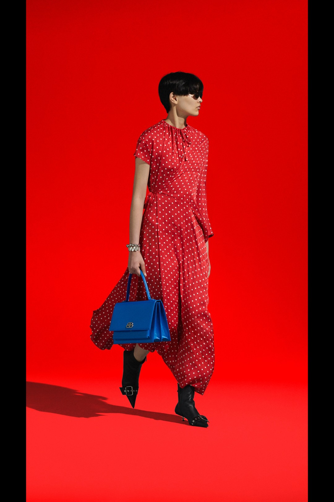 Демна Гвасалия по традиции предлагает нам странные (но классные!) сочетания: стайлинг одежде делают вьетнамки, поставленные на каблуки, узкие очки, которые, кажется, не потеряют своей актуальности, и классические сумки Sharp Satchel, которые в лукбуке носят и парни, и девушки. Часть вещей из pre-fall коллекции Balenciaga уже представлена в ДЛТ — так будем же задавать тренды, а не следовать им!