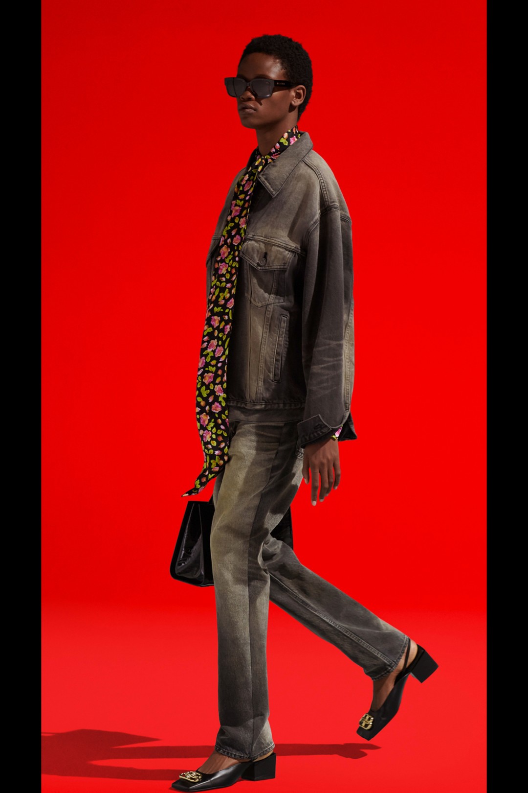Новая pre-fall коллекция Balenciaga: вареные джинсы, брендированные шубы и вьетнамки на каблуках