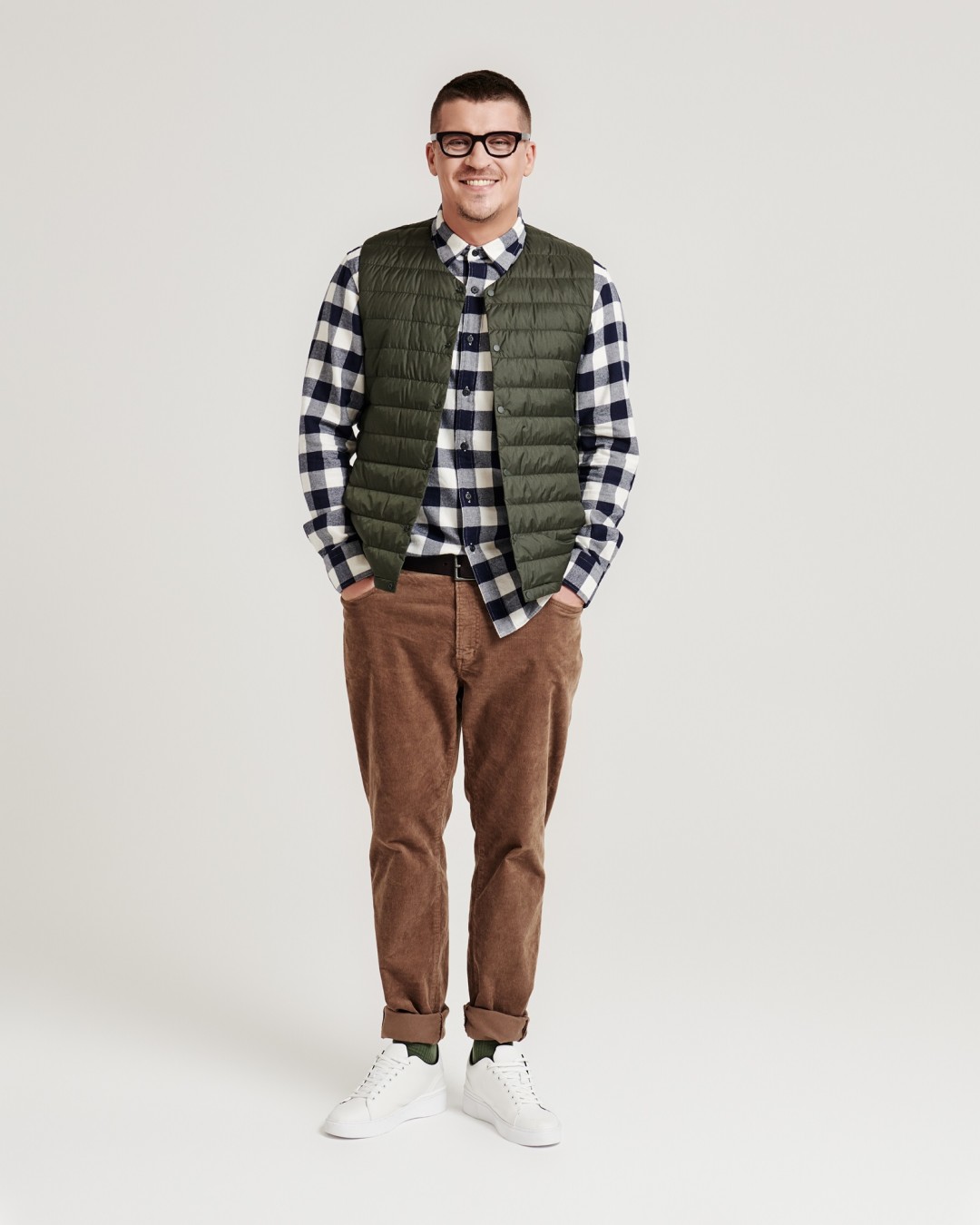 Для многослойного непринужденного образа, который уместен как в городе, так и на отдыхе, Антон Беляев выбрал фланелевую рубашку. Ключевой вещью второго образа музыканта стал кашемировый свитер высокого качества, который не только невероятно теплый, но и исключительно мягкий.