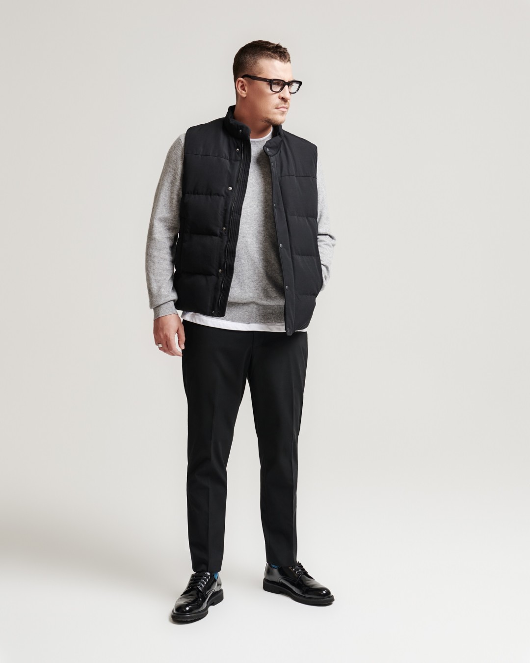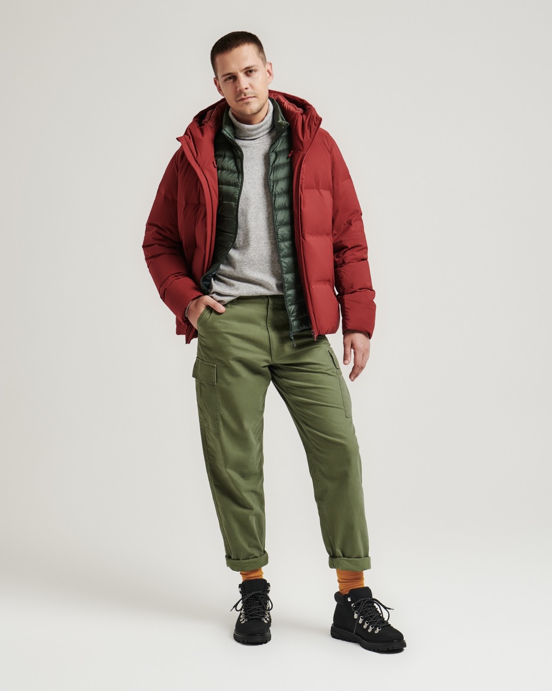 Милош Бикович показал, как носить бесшовную парку красного цвета—с брюками карго и ультралегким пуховиком получается модный силуэт и актуальный образ, уместный как для активного отдыха, так и для большого мегаполиса. Для второго образа актер выбрал лаконичный свитер из овечьей шерсти премиум-класса классического бежевого оттенка. Он делает повседневный образ максимально элегантным и комфортным.