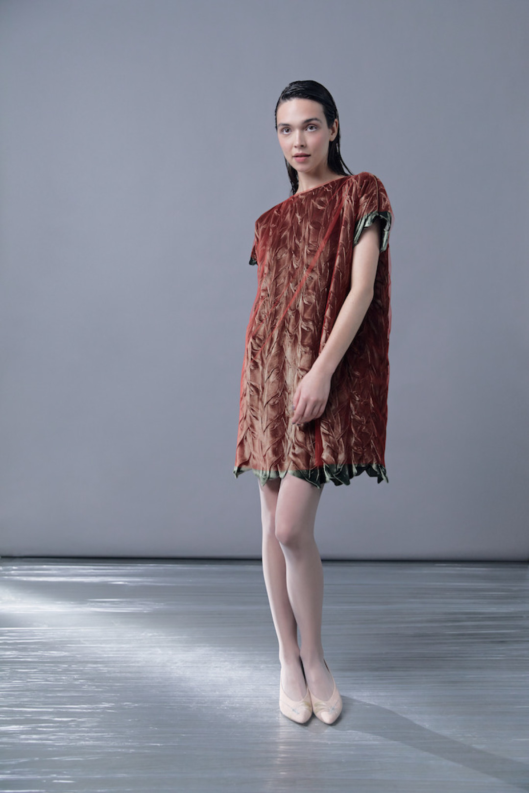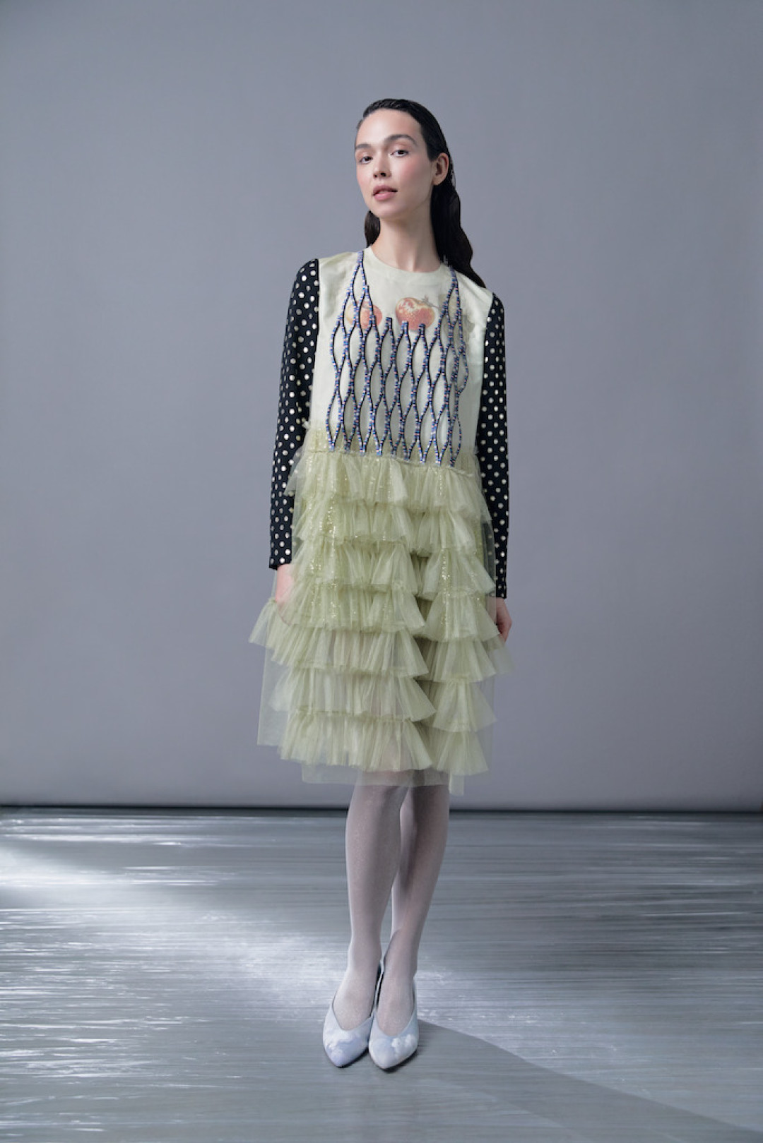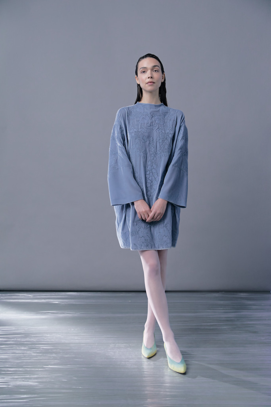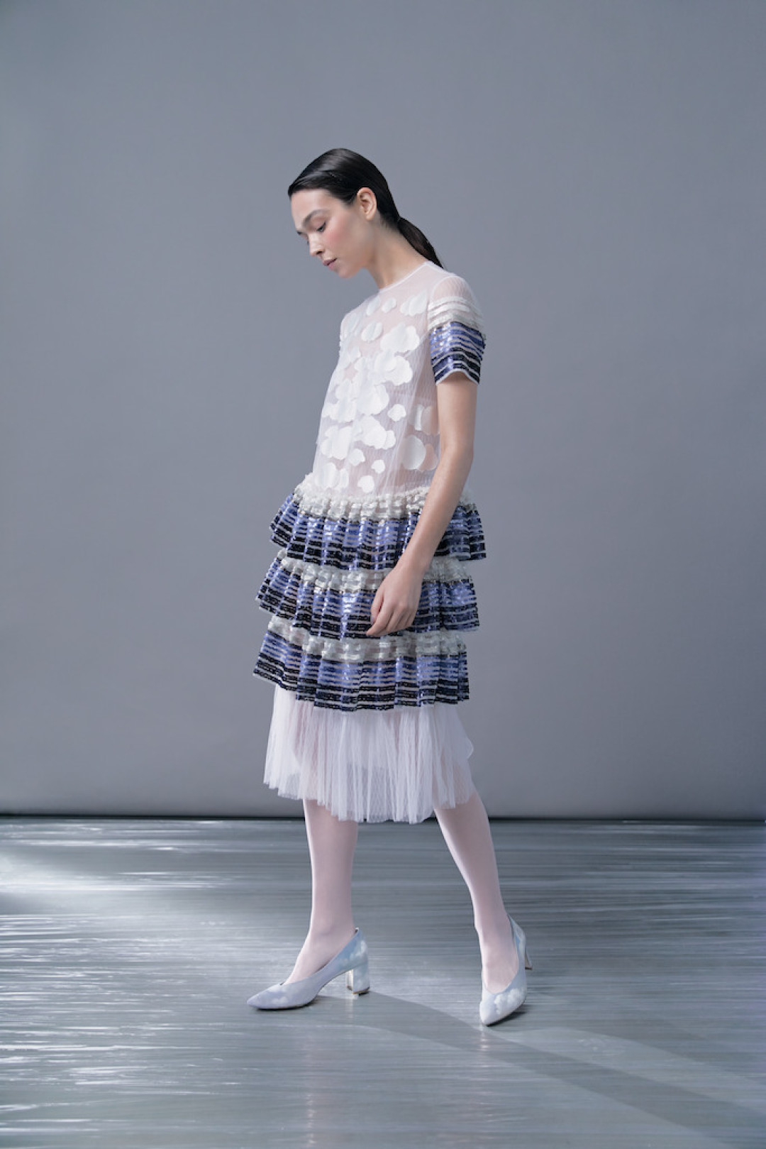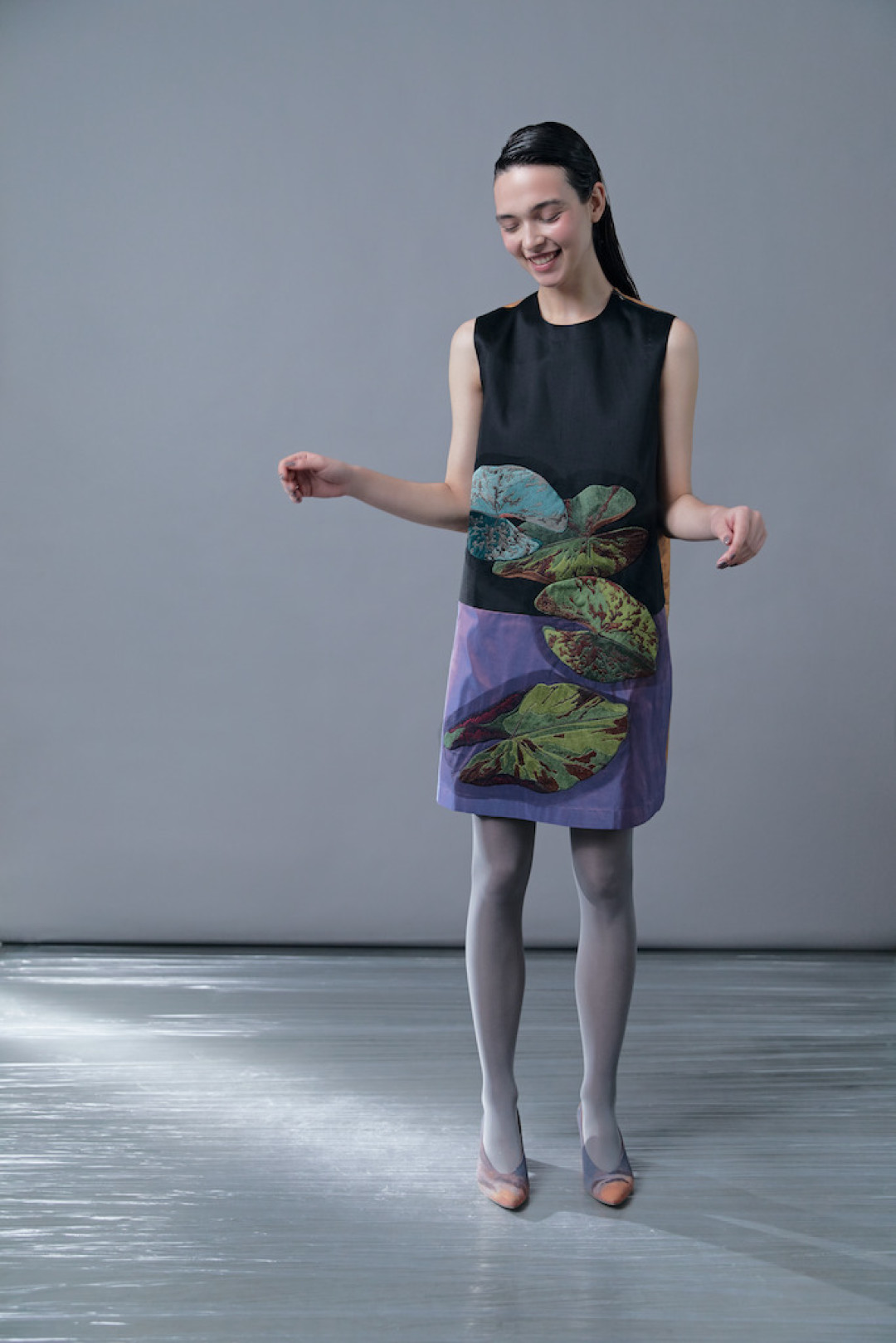 Каждое платье, как это обычно бывает в коллекциях Татьяны Валентиновны, похоже на отдельное живописное полотно — с «нарисованными» кувшинками, осокой, папоротниками, лебедями и теми самыми стрекозами с крыльями, прозрачными, как слюда. Все эти вышивки были созданы в стенах модного дома Tatyana Parfionova в Петербурге, что придает коллекции уникальное кутюрное качество. Однако сама Татьяна Валентиновна не считает важным деление на haute couture и ready-to-wear — «в наше время границы между этими понятиями стираются».