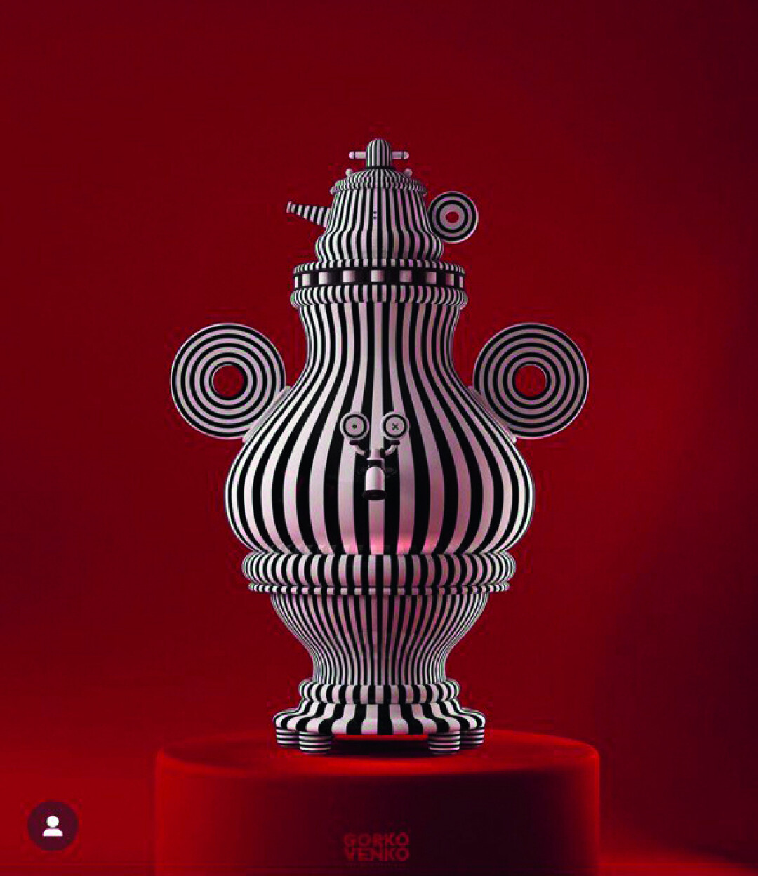 На работах дизайнера Григория Горковенко я просто залипла. Шестиметровые люстры, шкафы-оммажи льву Бонифацию, вазы-неваляшки и гигантские бусы — все это настолько оригинально, что можно пока не волноваться за наступление нейроcетей Midjourney и DALL-E, им такое никогда не сгенерировать.