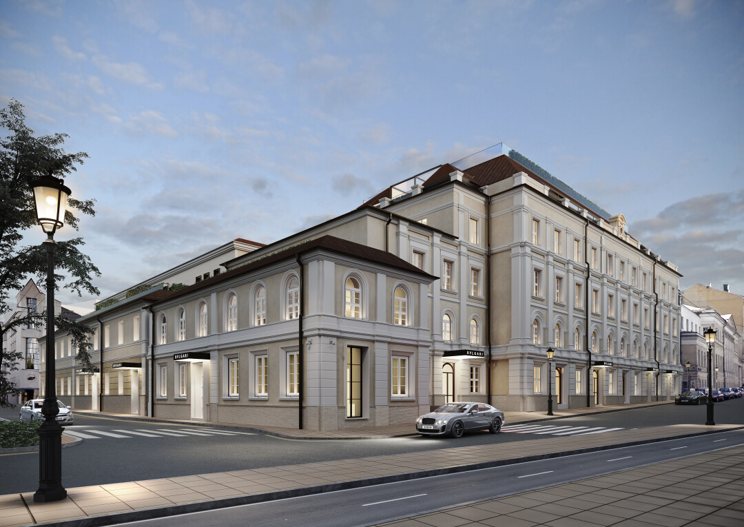 Bvlgari Hotel & Residences Moscow появится на углу Большой Никитской и Большого Кисловского переулка. Он расположен в непосредственной близости от главных московских достопримечательностей — Кремля и Красной площади. Это будет целый комплекс из одиннадцати квартир, трех таунхаусов и пентхаусом площадью 460 квадратных метров с видовой гранд-террасой. На территории отеля также появится лаундж-зона и внутренний двор в стиле итальянских палаццо, спа и фитнес-центры, знаковые для Bvlgari ресторан IL Ristorante и бар IL Bar.
