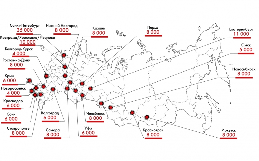 Вместе с Петербургом это будет уже 21 журнал – в едином стиле и одного (высочайшего!) качества, с точно выверенными пропорциями федерального и локального контента. Тираж нового журнала в Костроме, Ярославле и Иваново составит 10 000 экземпляров, в Крыму – 6 000, в Омске – 5 000.