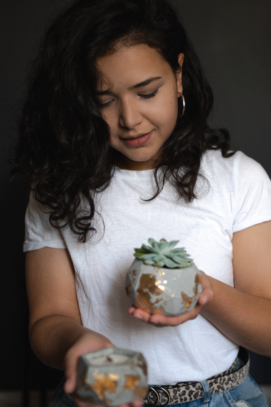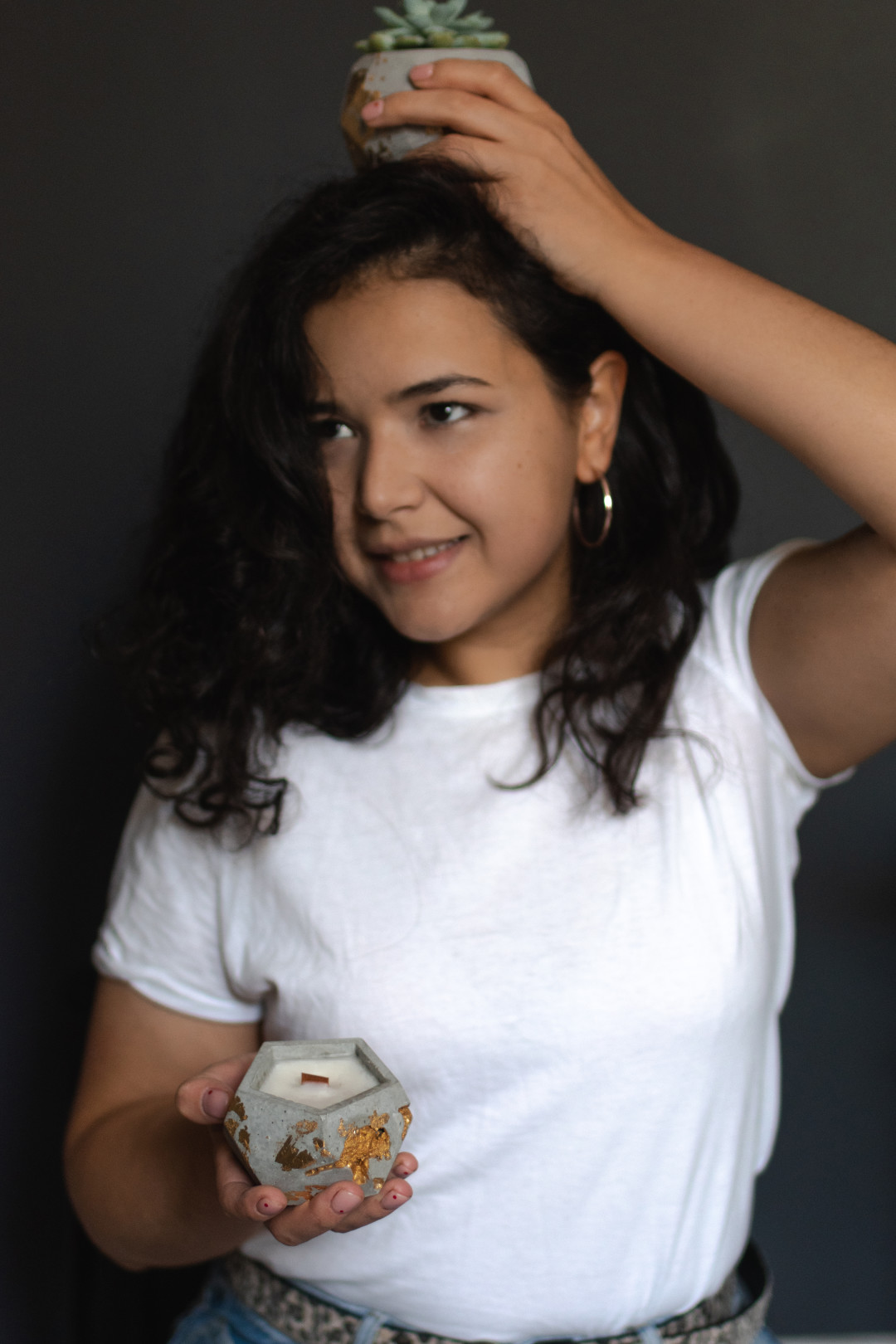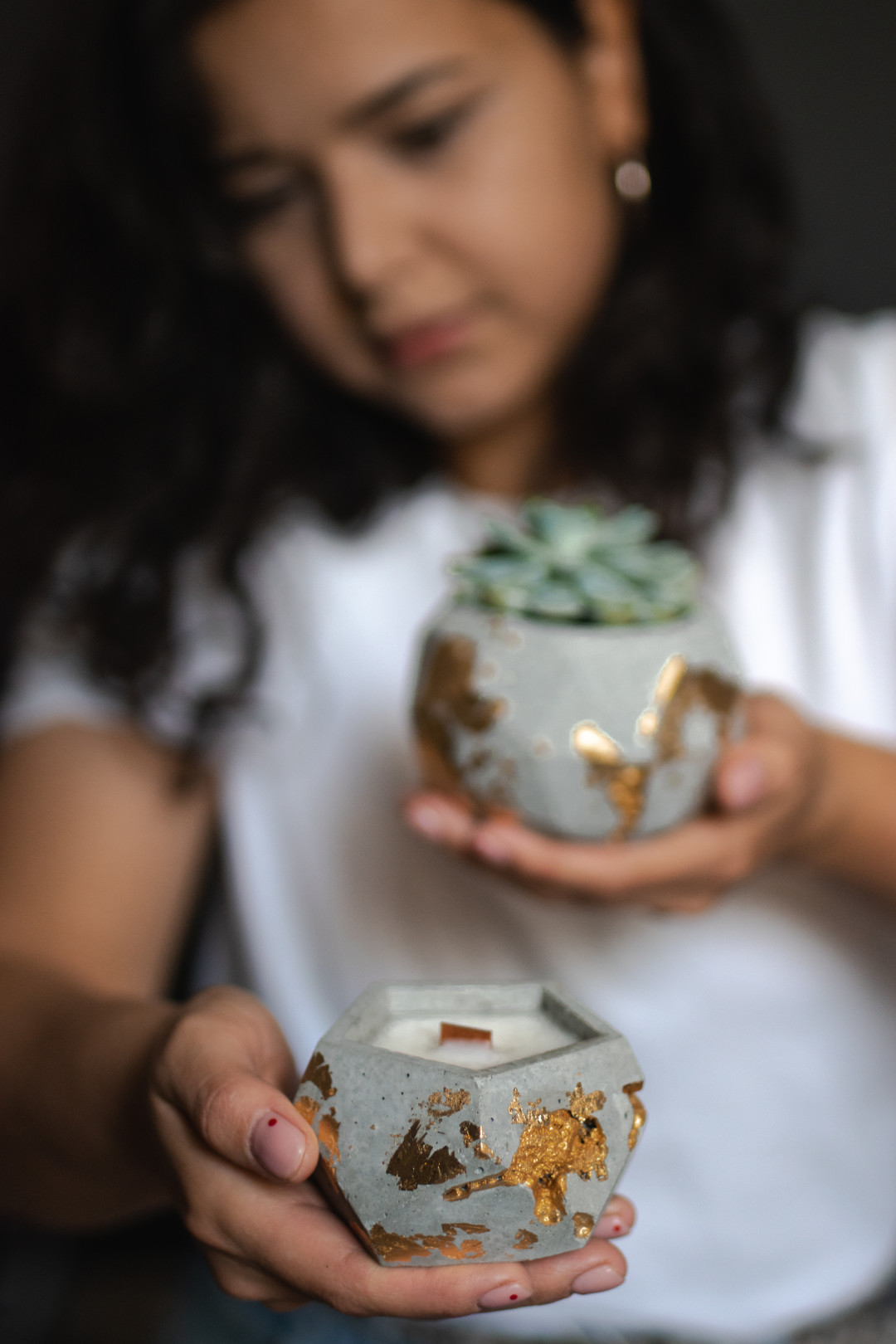 Такие горшочки подойдут для маленьких растений, суккулентов и подсвечников. Плюс, это философия экопотребления, переработки. Камила поясняет ее так: «Когда у меня заканчиваются свечи из IKEA, я потом не знаю, что делать с этими стеклянными стаканчиками, так как их никак нельзя использовать. А в мои бетонные горшочки, например, можно перезалить свечу, посадить растение или хранить в них украшения и какие-то мелочи».