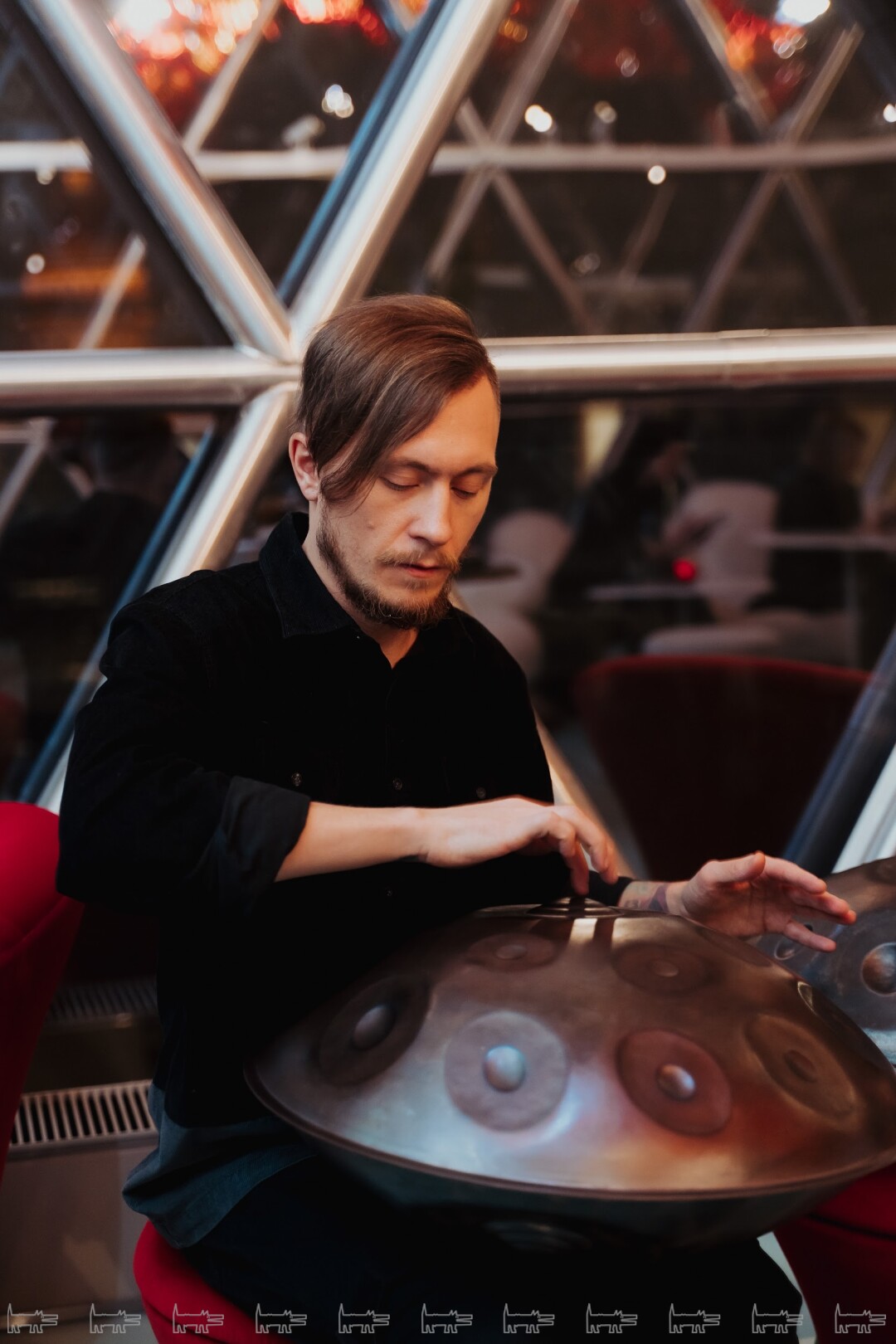 Вступительное слово под звуки ханга держала куратор отдела Новейших течений Русского музея Евгения Сероусова. Она представила гостям жемчужину интерьера THE — люстру «Коралловый закат» работы американского скульптора Дейла Чихули.