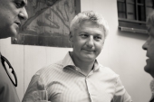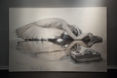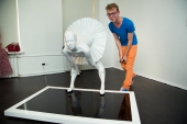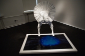 На минувшей неделе в галерее Лизы Савиной на Невском проспекте открылся проект Дмитрия Шорина и Владимира Королюка под названием «Over», представленный в рамках программы сотрудничества с Обществом А-Я. Дмитрий Шорин – известный петербургский живописец – с недавних пор активно осваивает в своём творчестве 3D-пространство. С 2013 года его белоснежные ангелы с самолётными крыльями охраняют и напутствуют пассажиров нового терминала Пулково. Владимир Королюк, который в том проекте был техническим консультантом, на этот раз выступает уже в качестве полноправного соавтора. Их новый совместный проект OVER – не просто скульптурный, но мультимедийный.