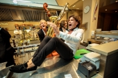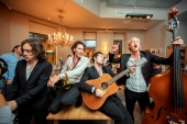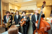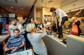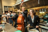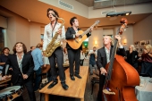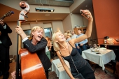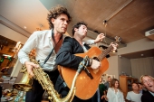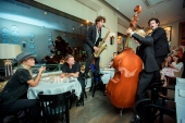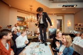 С гитарами, саксофоном и даже контрабасом артисты перемещались по всему заведению, исполняя композиции живой музыки у каждого столика. К финалу вечера все гости поддались танцу, а The Phly Boyz стали использовать столы, барную стойку и место подачи блюд в качестве сцены.